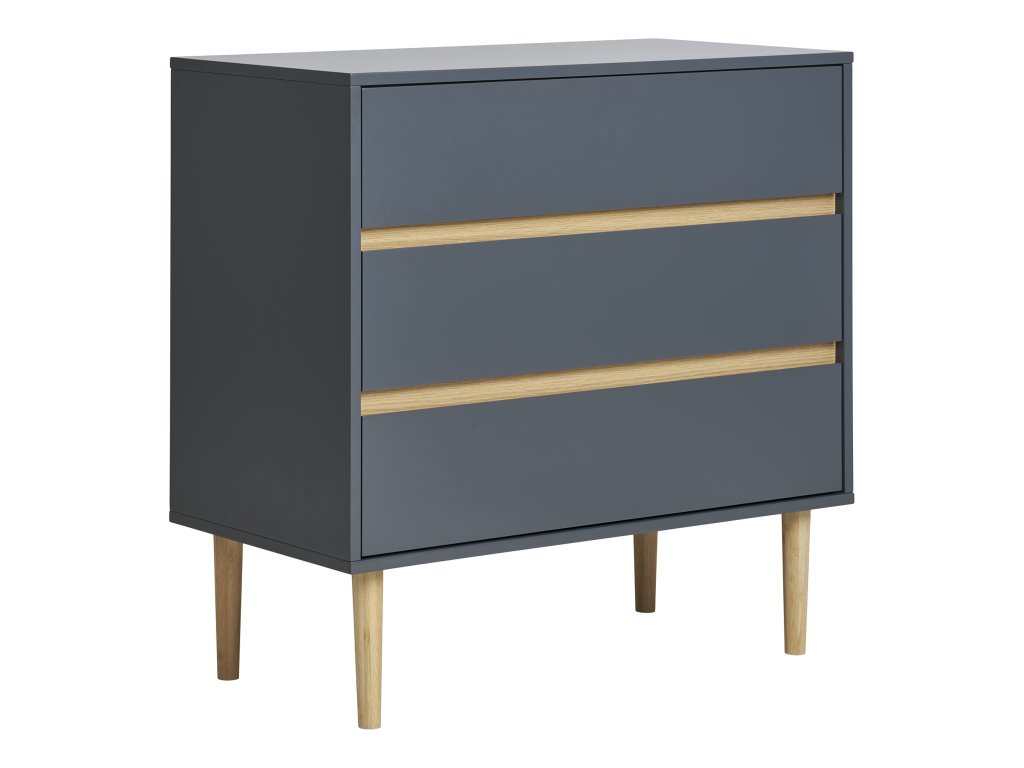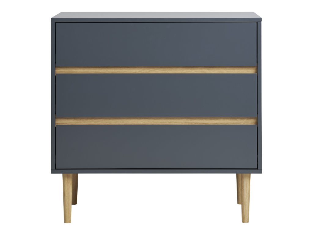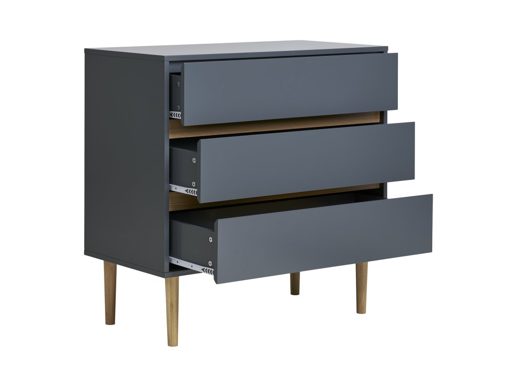 Komoda má kompaktné rozmery 80 × 40 × 80 cm, vďaka čomu sa perfektne hodí do obývačky, spálne, predsiene či pracovne. Poskytuje dostatok úložného priestoru pre každodenné predmety a zároveň pôsobí ľahko a elegantne. Pevná konštrukcia je vyrobená z MDF dosky, doplnená o rám z masívneho borovicového dreva, čo zabezpečuje stabilitu a dlhú životnosť. Maximálna nosnosť 20 kg postačí na bežné využitie v domácnosti.