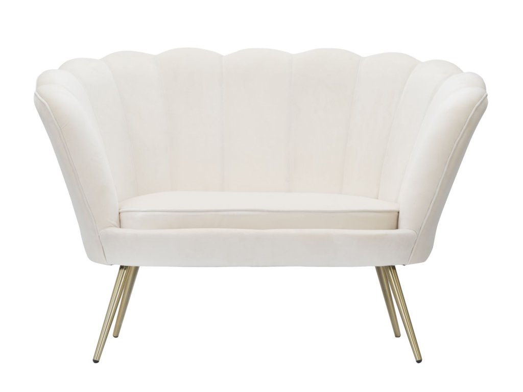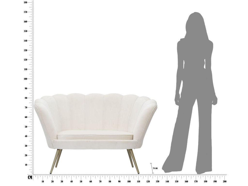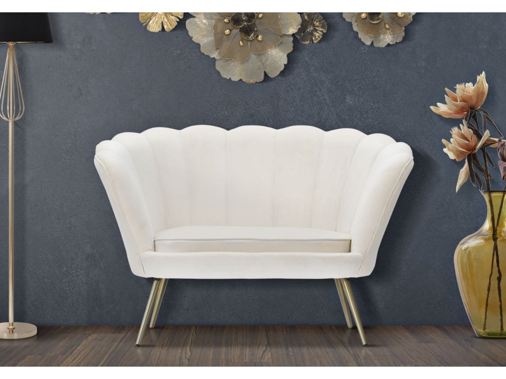 Moderná pohovka je stelesnením jemnej elegancie a útulného komfortu. Tento kompaktný dvojmiestny diván s rozmermi 130 × 74 × 84 cm vyniká svojím oblým tvarom, krémovým čalúnením a jemnými zlatými detailmi, ktoré mu dodávajú sofistikovaný vzhľad.