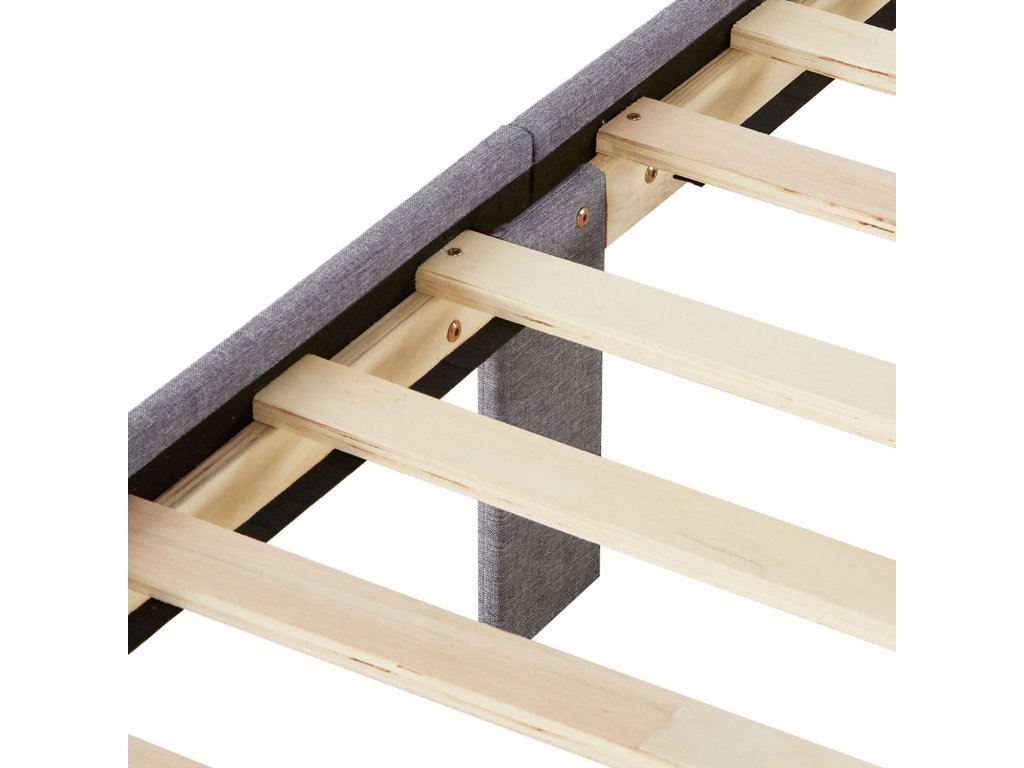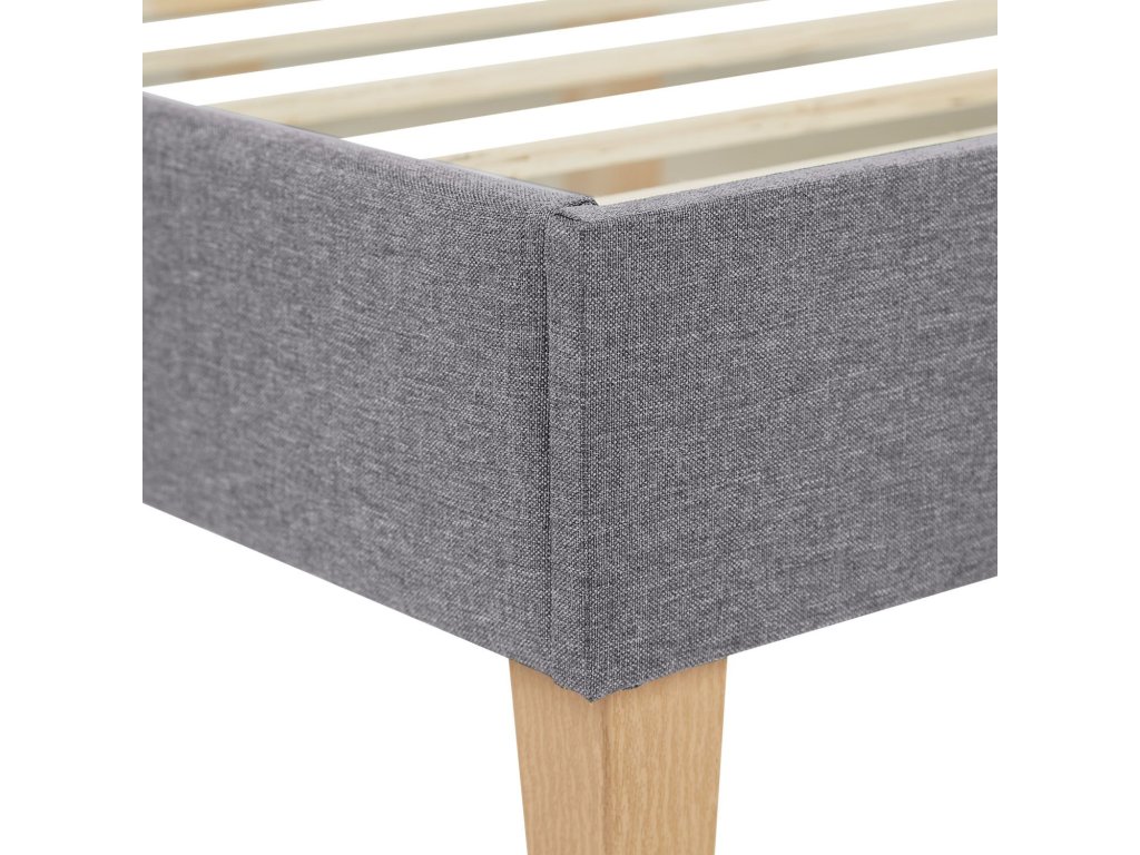 Stabilný drevený rám s centrálnou podpornou lištou z prírodného svetlého dreva a dodávaný rošt (2× rolovací rošt) zabezpečujú spoľahlivú nosnosť a pevnosť postele. Balenie obsahuje prehľadný montážny návod, takže zloženie je rýchle a jednoduché. (Matrac, obliečky a vankúše nie sú súčasťou balenia.)