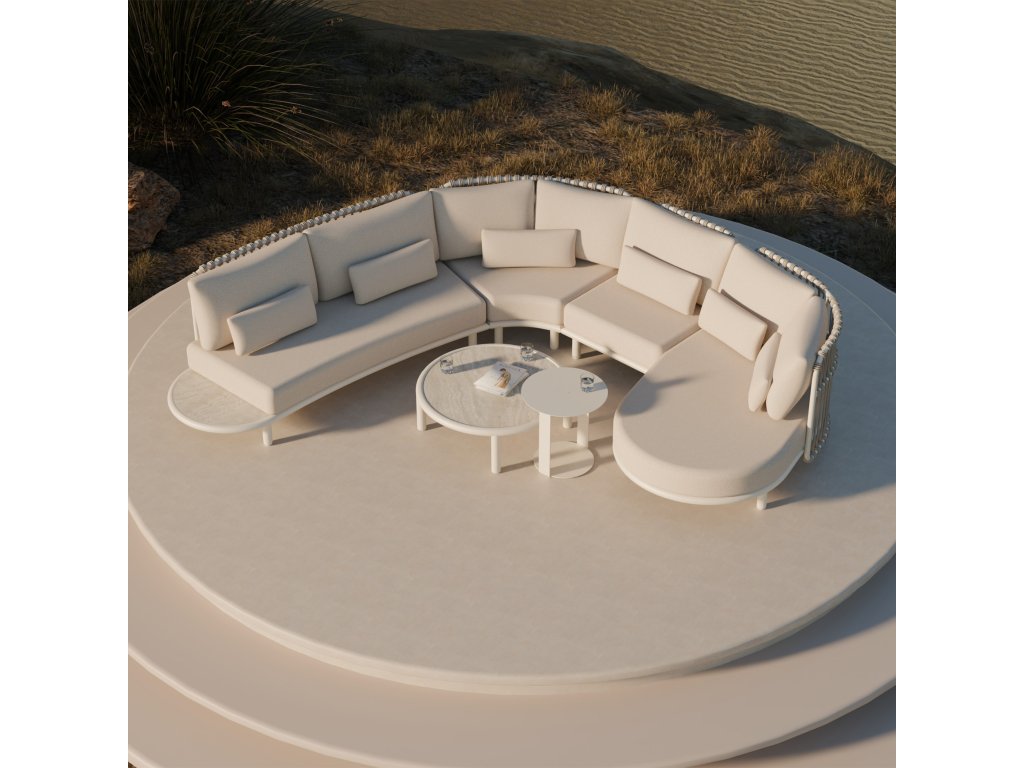 Záhradná sedacia súprava Vedra je ideálnym riešením pre tých, ktorí hľadajú komfort, štýl a elegantný dizajn do exteriéru. Obľúbená pre svoje oblé tvary a harmonické línie, táto súprava vytvára príjemnú, sofistikovanú relaxačnú zónu na terase, záhrade či pod pergolou, kde sa pohodlne usadí až 6 osôb.