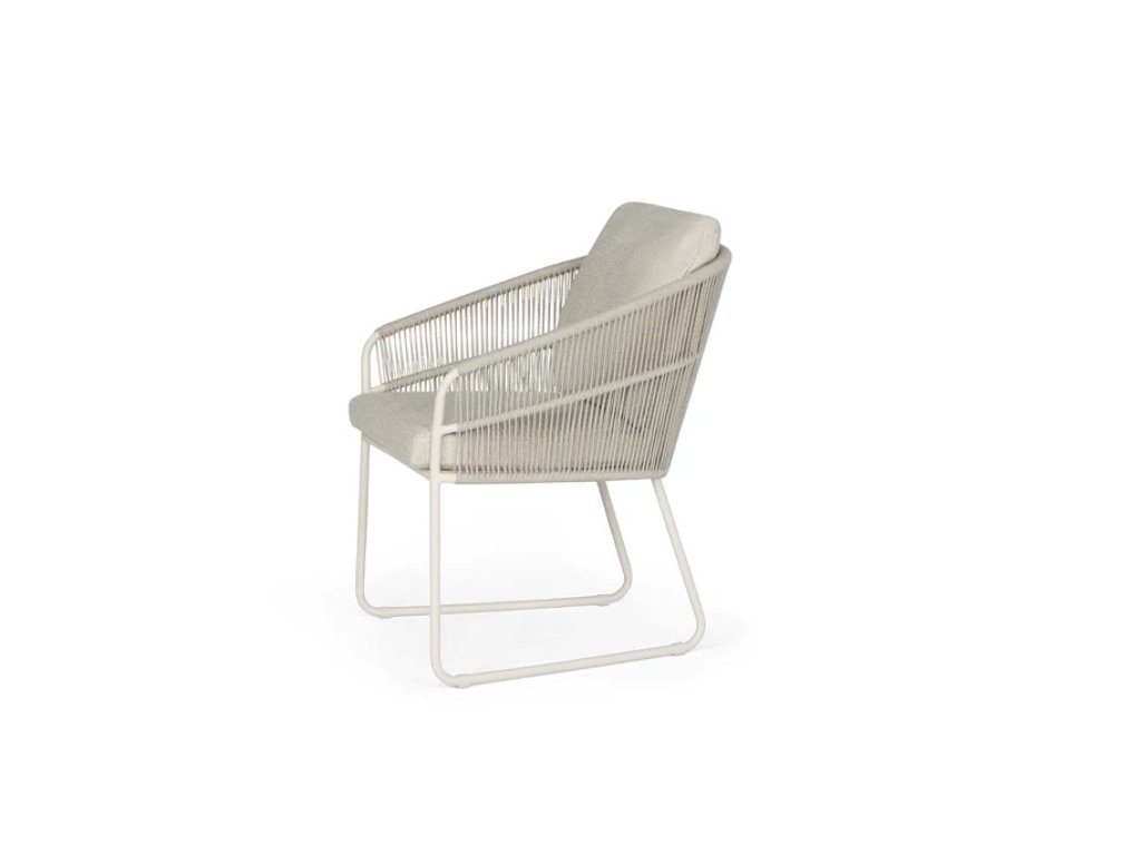 Záhradná stolička SUNS Noli v prevedení Camel Sand predstavuje dokonalé spojenie elegancie, komfortu a odolnosti. Vďaka jemne tvarovanému rámu z nehrdzavejúcej ocele, prémiovému rope výpletu a pohodlným vankúšom je ideálnou voľbou pre moderné terasy aj reprezentatívne exteriérové jedálenské priestory.