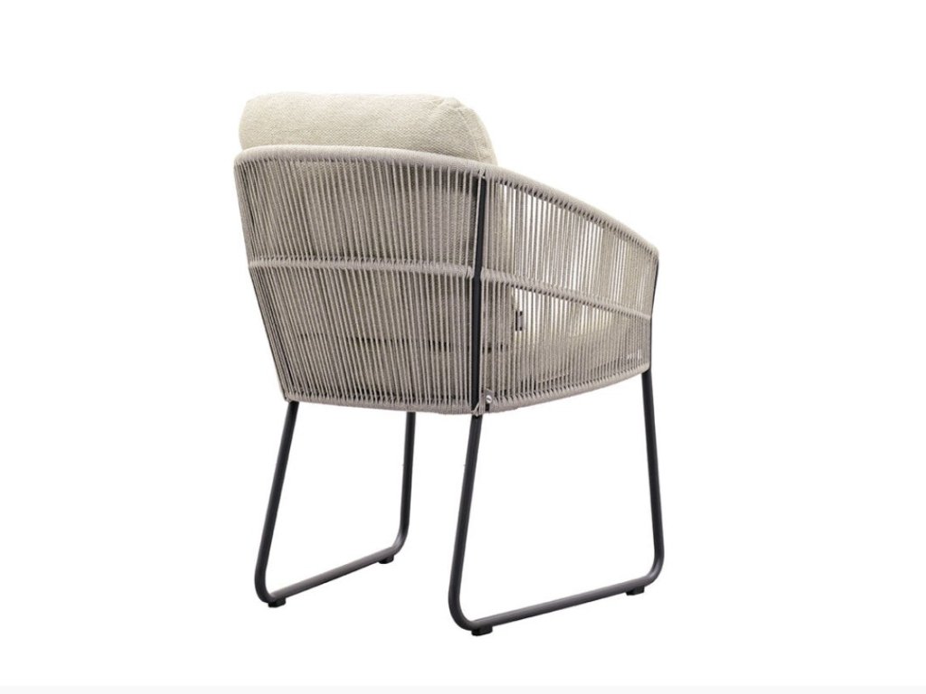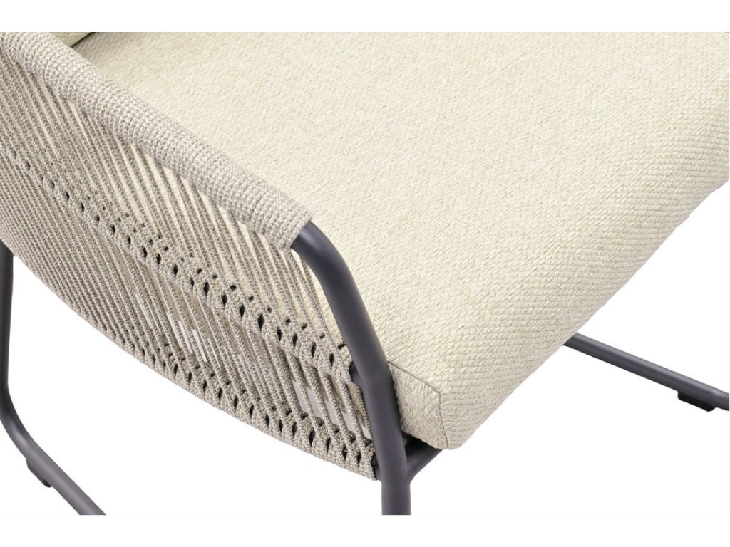 Sedák a operadlo sú vyhotovené z prémiového akrylového rope materiálu, ktorý je spracovaný v štýlovej fishbone väzbe. Tento detail dodáva stoličke sofistikovaný charakter a zároveň poskytuje príjemnú oporu tela.