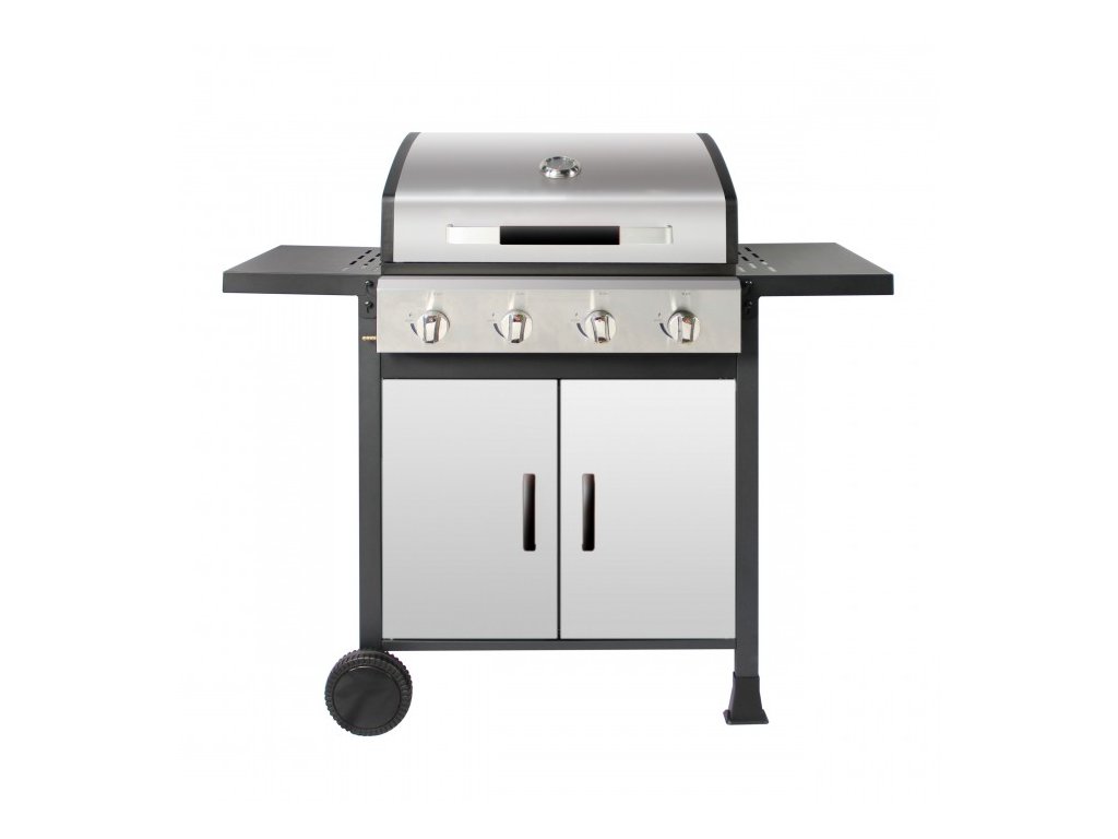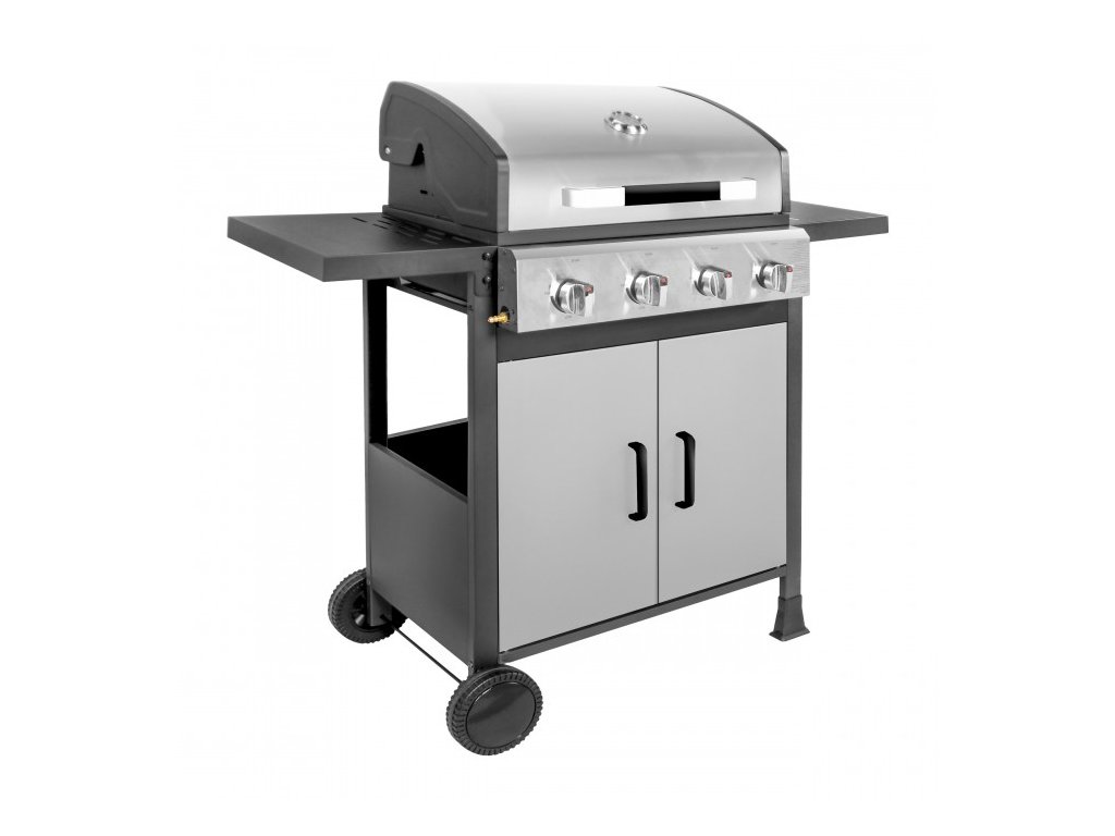 Moderný plynový gril vybavený 4 horákmi umožňuje prípravu viacerých jedál súčasne. Liatinový rošt sa rýchlo zahrieva, takže zariadenie je takmer okamžite pripravené na prácu. Dobre tiež vedie teplo, čo sa následne premieta do kvality hotových jedál. Vybavený sklopnými bočnými policami, na ktoré si môžete odložiť príslušenstvo potrebné na varenie, čo zvyšuje pohodlie pri grilovaní. V spodnej časti sa nachádza uzamykateľná skrinka, kam môžete umiestniť plynovú fľašu, čo zaisťuje vhodnú estetiku. Súprava obsahuje redukciu potrebnú na pripojenie fľaše.