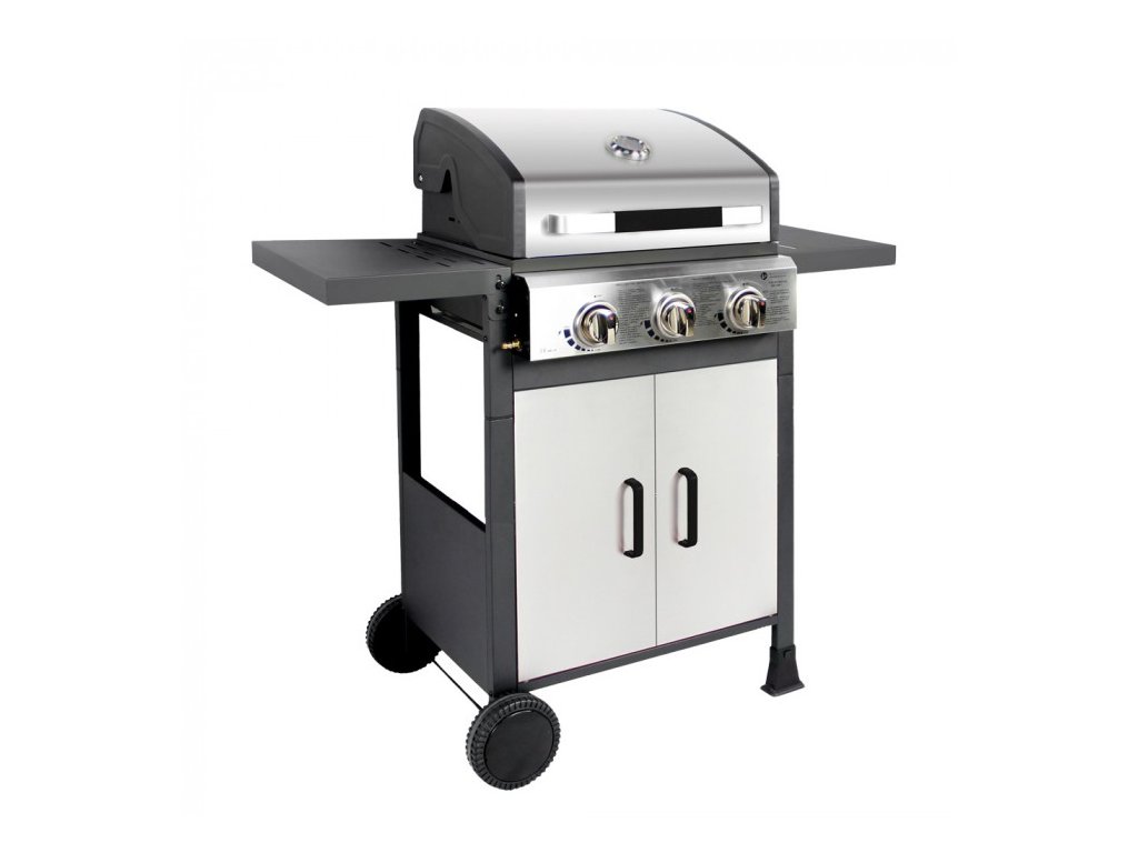 Moderný plynový gril vybavený 3 horákmi umožňuje prípravu viacerých jedál súčasne. Liatinový rošt sa rýchlo zahrieva, takže zariadenie je takmer okamžite pripravené na prácu. Dobre tiež vedie teplo, čo sa následne premieta do kvality hotových jedál. Vybavený sklopnými bočnými policami, na ktoré si môžete odložiť príslušenstvo potrebné na varenie, čo zvyšuje pohodlie pri grilovaní. V spodnej časti sa nachádza uzamykateľná skrinka, kam môžete umiestniť plynovú fľašu, čo zaisťuje vhodnú estetiku. Súprava obsahuje redukciu potrebnú na pripojenie fľaše.