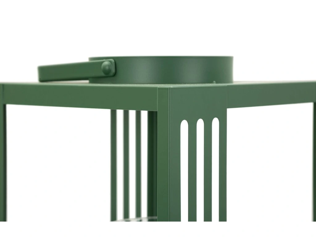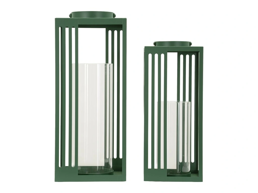 Lampáše sú vyrobené z kombinácie kovu a tvrdeného skla, pričom ich lineárna konštrukcia vytvára moderný a vzdušný vzhľad. Vertikálne kovové línie jemne filtrujú svetlo sviečky alebo LED osvetlenia a vytvárajú príjemnú a nenápadnú svetelnú atmosféru.