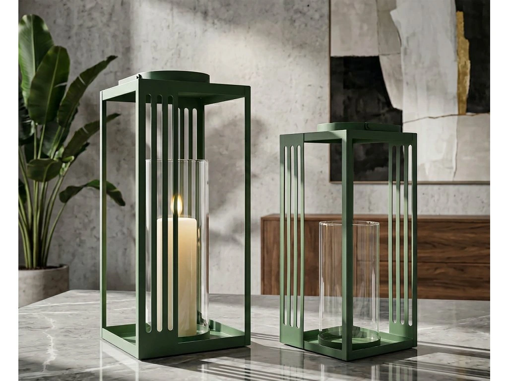 Lampáše Mauro Ferretti sú štýlovým dekoratívnym doplnkom, ktorý prináša do priestoru jemné atmosférické osvetlenie a moderný minimalistický dizajn. Tento set dvoch lampášov vyniká čistými líniami a elegantným geometrickým spracovaním.