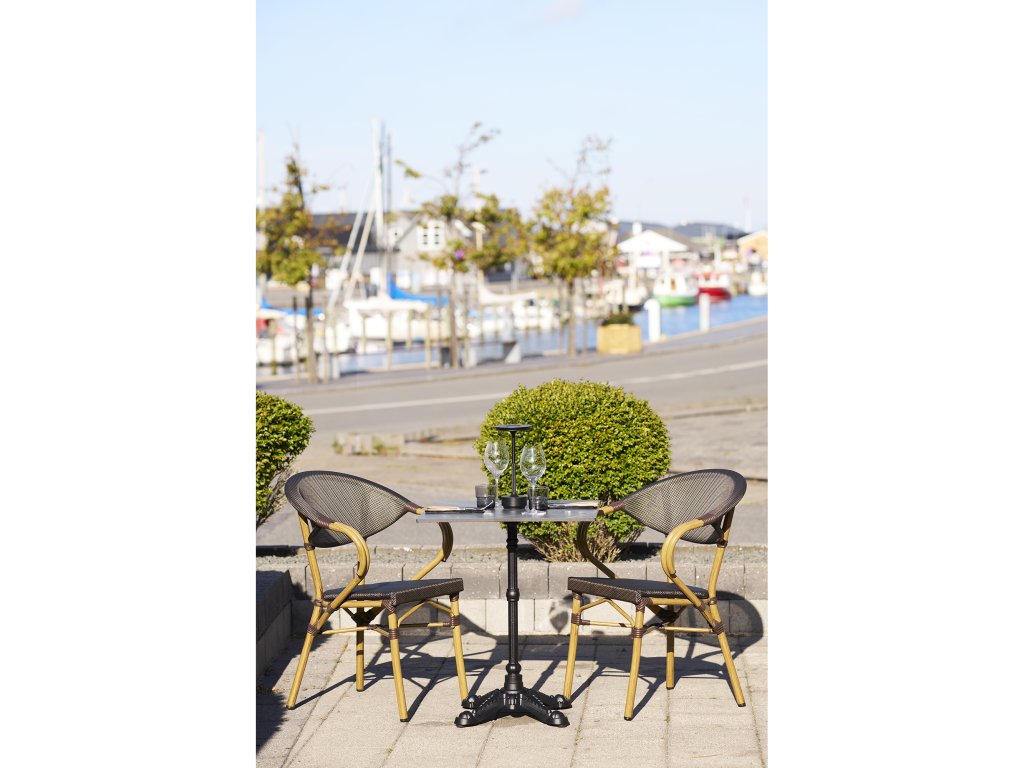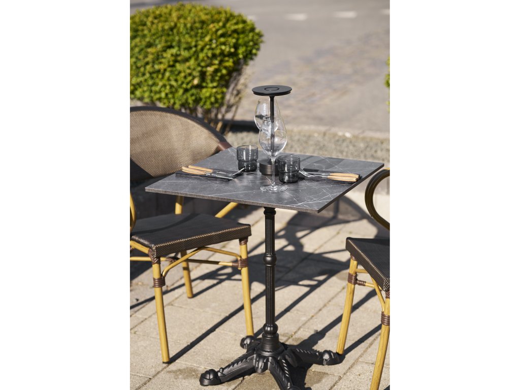 Kompaktný a štýlový, ideálny pre malé priestory, balkóny alebo kaviarne. Odolná konštrukcia, ľahká údržba a moderný mramorový vzhľad dodávajú interiéru eleganciu a praktickosť.