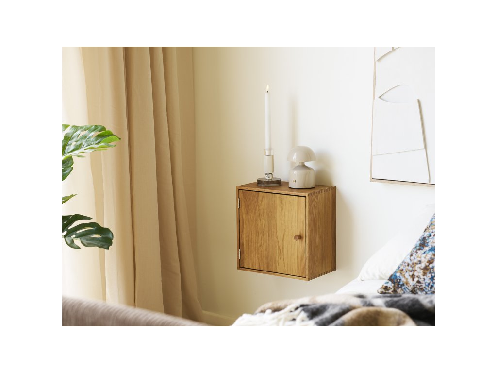 Townsville – nástenná dubová polica s dvierkami v prírodnom dekore