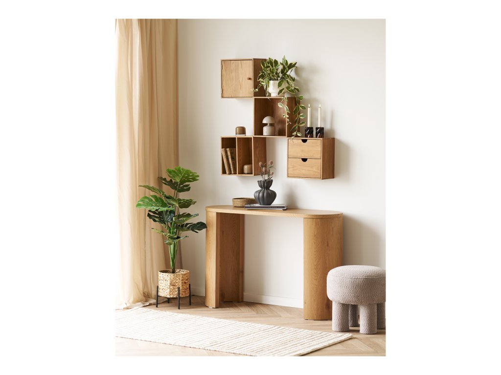 Polica je vyrobená z prírodného dubového dreva, ktoré sa vyznačuje dlhou životnosťou, pevnosťou a nadčasovou estetikou. Vďaka svojej prirodzenej kresbe dreva a teplému odtieňu Natural vnesie do každého priestoru pocit útulnosti a harmónie.