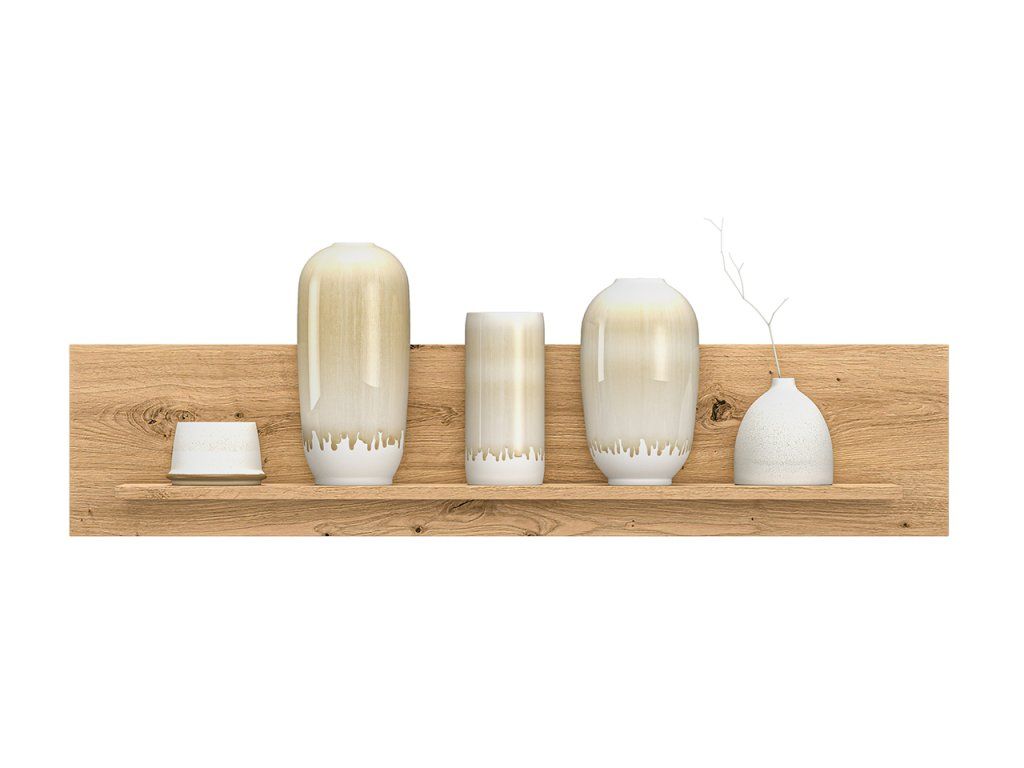 Nástenná polica z kolekcie Nevio spája minimalistický dizajn s praktickým využitím pre každodenné potreby. Elegantný dekor Dąb Artisan dodáva nábytku prírodný a nadčasový vzhľad, ktorý ľahko zapadne do rôznych miestností.