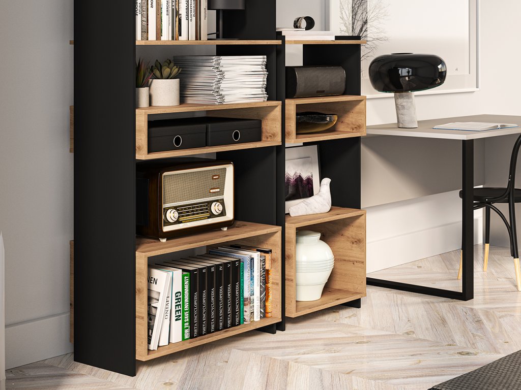 Regál Tris – nízky regál v dekore dub artisan / čierna