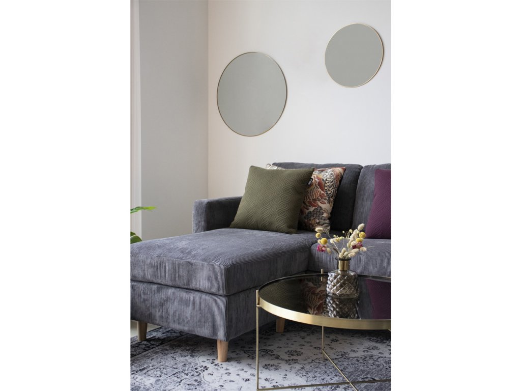 Zrkadlo Jersey v okrúhlom prevedení je oslavou čistých tvarov a hrejivých kovových tónov. Jeho jemný rám v mosadznom vzhľade pôsobí ako šperk na stene, pričom vďaka kruhovému dizajnu zjemňuje ostré línie nábytku a vnáša do interiéru pocit rovnováhy a pokoja.