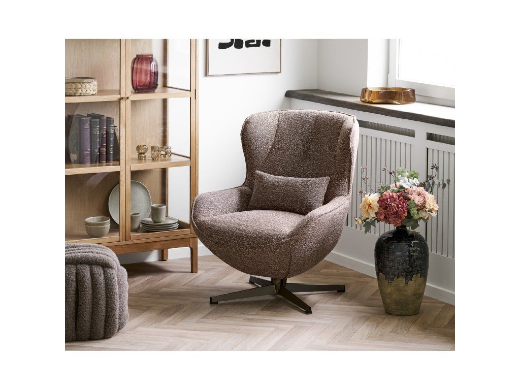 Konštrukcia z preglejky zabezpečuje stabilitu a dlhú životnosť, zatiaľ čo jeho ergonomický tvar podporuje pohodlné opretie a relax. Vďaka svojim proporciám pôsobí kreslo zároveň útulne aj moderne.