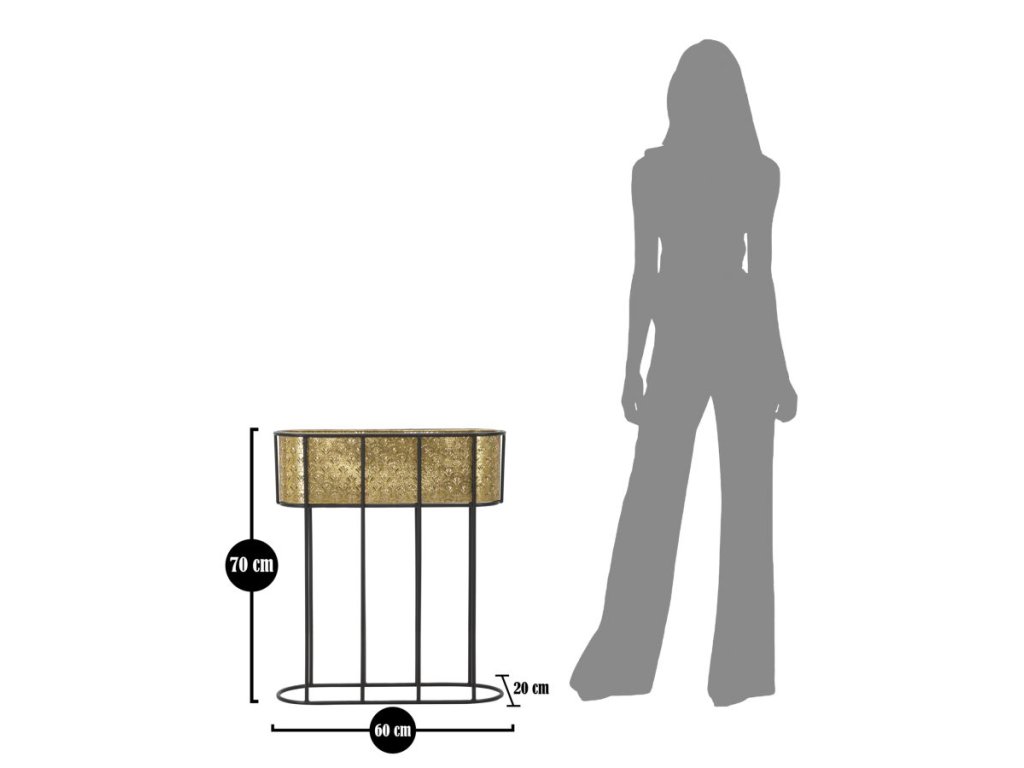Tento oválny stojan na rastliny kombinuje estetiku s praktickosťou – nádoba je odnímateľná, čo uľahčuje presádzanie rastlín aj údržbu. Elegantný tvar a prepracované detaily z neho robia výrazný dekoratívny prvok, ktorý možno umiestniť samostatne alebo v kombinácii s inými dekoráciami či rastlinami.