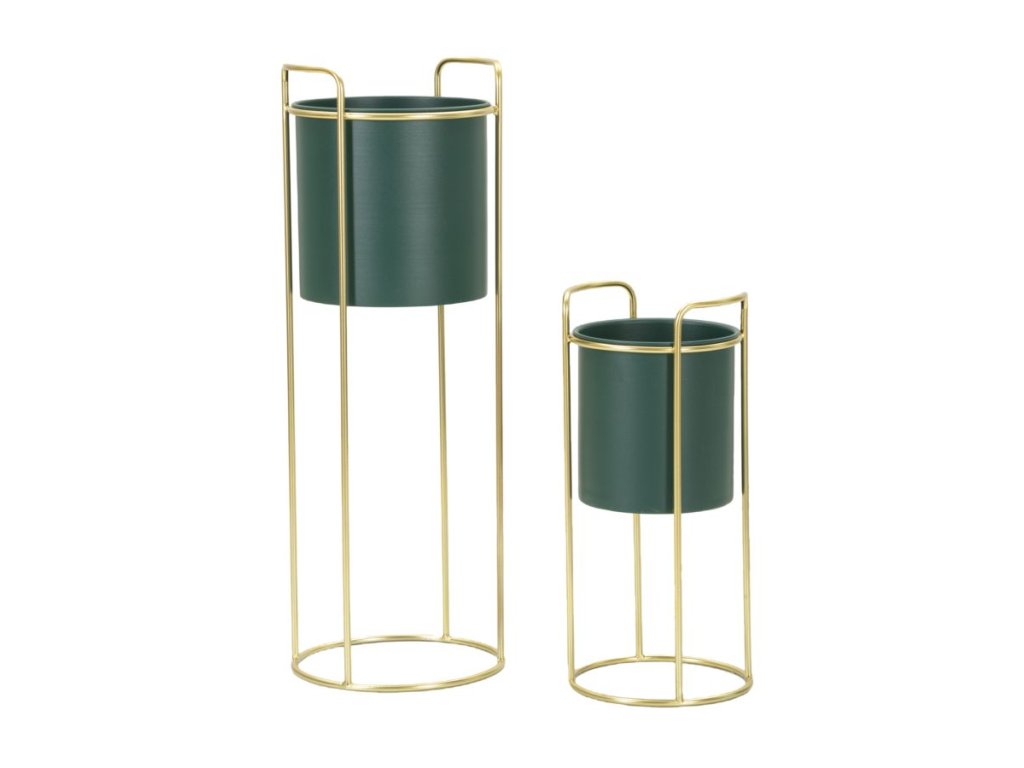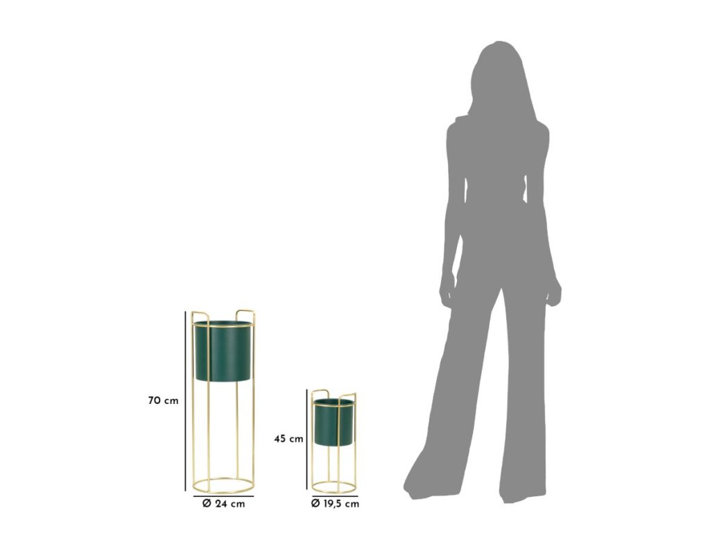 Pár stojanov na vázy Grent Slim s rozmermi Ø 24 × 70 cm a Ø 19,5 × 45 cm spája moderný dizajn zelených váz so zlatou kovovou základňou. Vďaka štíhlemu tvaru a elegantnému farebnému kontrastu pôsobia mimoriadne sofistikovane a dokonale zvýraznia krásu rastlín či dekorácií.