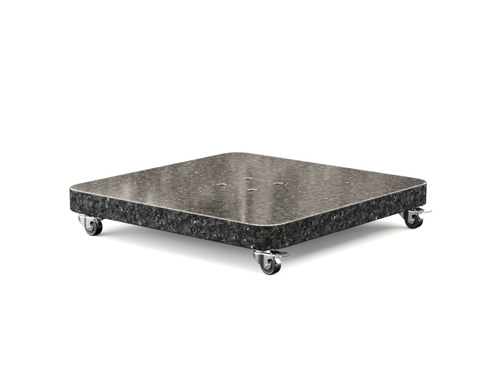 Podstava pre záhradné slnečníky ANCONA vo farbe kráľovská antracitová je vyrobená z prírodného granitu /žula/ a bude tvoriť vynikajúci a spoľahlivý základ pre Váš záhradný slnečník. Jej váha 90, 120 alebo 150 kg ďaleko presahuje bežný štandard, takže sa na ňu môžete bez obáv spoľahnúť. Navyše, podstava je vybavená praktickými otočnými kolieskami s brzdami, ktoré umožňujú jednoduchú manipuláciu so slnečníkom po terase a aj jeho zaistenie v požadovanej polohe. Základňa je vhodná pre konzolové slnečníky na terasu od značky PLATINUM, ako sú Challenger, Nexus, Beaufort, je však kompatibilná so všetkými slnečníkmi na balkón. Nakoľko je vrchná doska leštená, základňa z prírodného kameňa nadobúda luxusný a čistý vzhľad. Žula navyše patrí k veľmi nenáročným materiálom na údržbu.