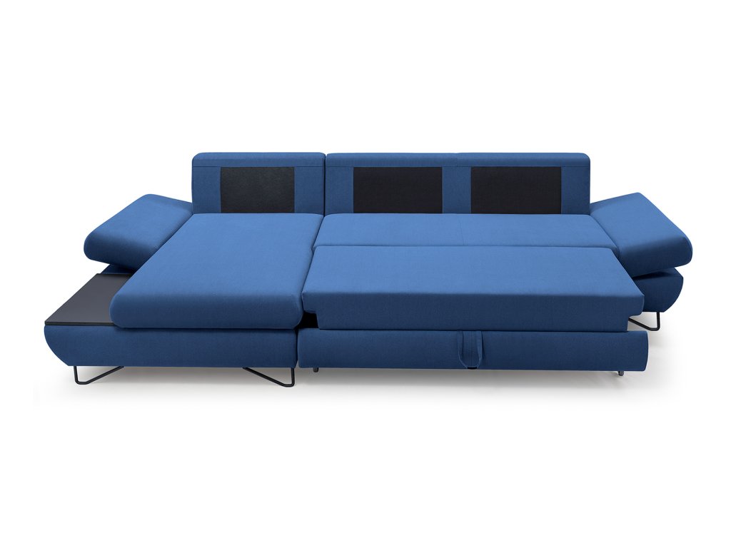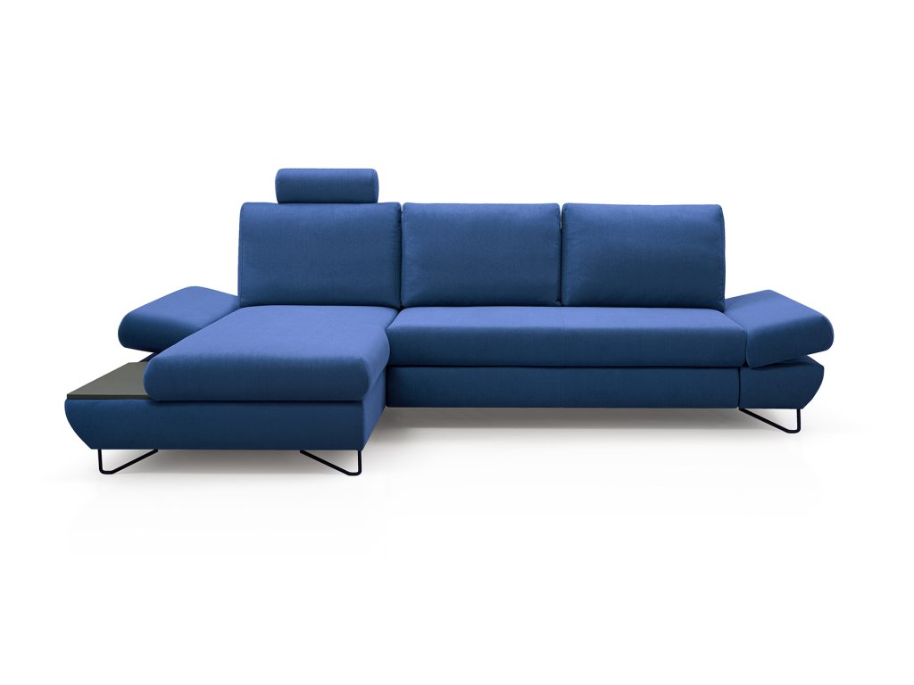 Dominantou modelu sú jemné, kovové nohy, ktoré dodávajú celej konštrukcii ľahkosť a moderný šmrnc. Vizuálne pôsobí pohovka subtílne, no v skutočnosti ponúka bohatý priestor na oddych aj spánok. Zaujímavým dizajnovým aj praktickým prvkom je vstavaná funkčná polica, ideálna na odloženie kníh, dekorácií alebo šálky kávy – priamo na dosah ruky.
