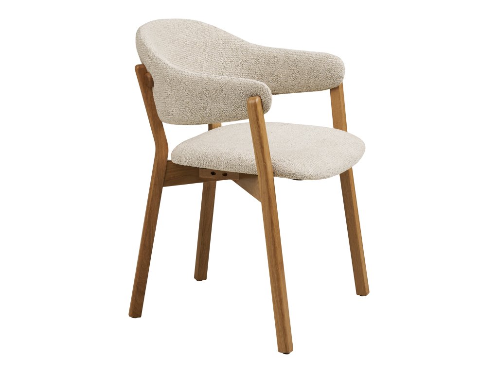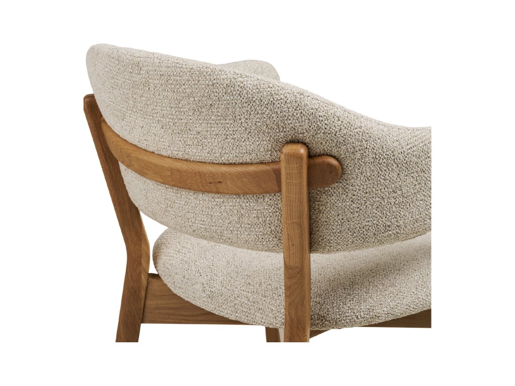 Masívna dubová konštrukcia s certifikáciou FSC® MIX zaručuje nielen stabilitu a dlhú životnosť, ale aj udržateľný pôvod materiálu. Každý kus nesie pečať prírodnej krásy dreva, ktorá v kombinácii s jemným béžovým čalúnením vytvára elegantný kontrast. Tento dizajn dokonale zapadne do moderných, škandinávskych aj klasických interiérov, pričom v priestore pôsobí štýlovo a harmonicky.