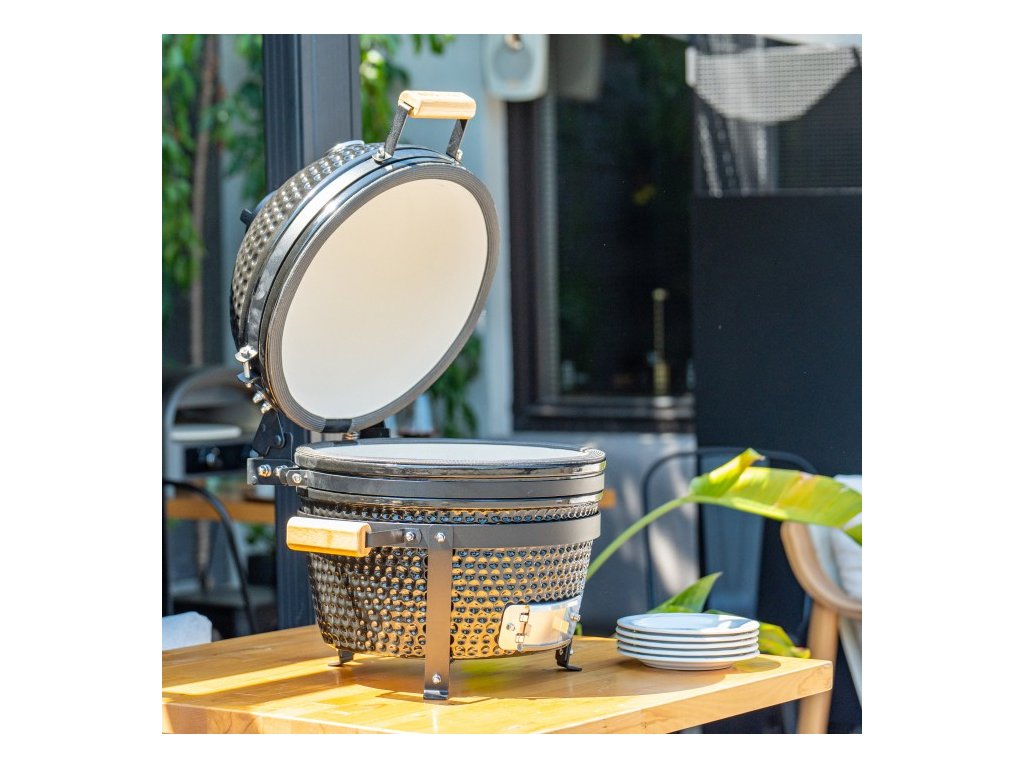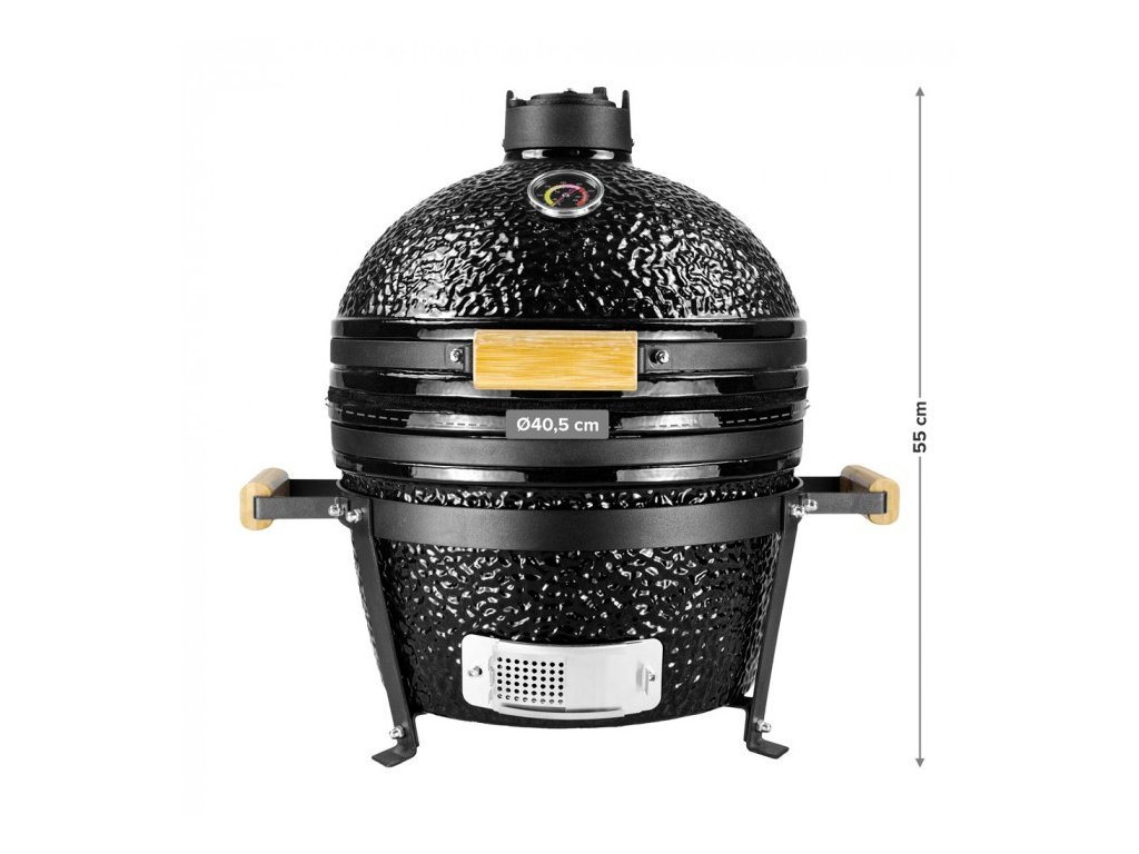 Tento moderný keramický gril na uhlie predstavuje dokonalú kombináciu štýlu, funkčnosti a odolnosti. Bol navrhnutý pre skutočných nadšencov grilovania a vďaka pokrievke s teplomerom splní očakávania aj náročných používateľov. Zabezpečí nezabudnuteľné chute a arómy počas spoločných chvíľ s rodinou a priateľmi na čerstvom vzduchu.