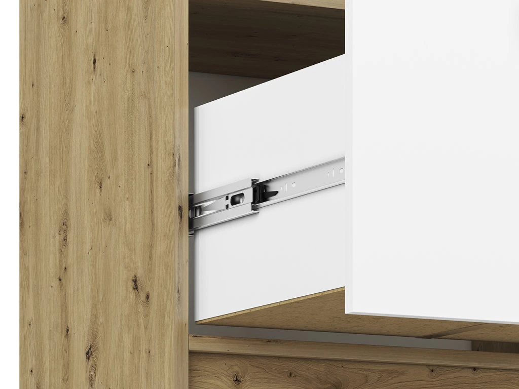 Vďaka kompaktným rozmerom je vhodný aj do menších izieb, pričom ponúka dostatok úložného priestoru bez toho, aby pôsobil robustne. Vysoké prevedenie efektívne využíva vertikálny priestor miestnosti.