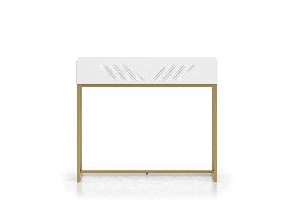 Toaletný stolík Clearing je elegantný a praktický kozmetický stolík, ktorý vytvára ideálne miesto pre každodennú starostlivosť o seba. Kombinácia bieleho matného povrchu a kovovej podnože v čiernej alebo zlatej farbe dodáva nábytku moderný a luxusný vzhľad, ktorý sa hodí do spálne aj šatníka.