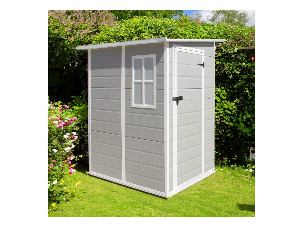 Vďaka modernému a univerzálnemu dizajnu v neutrálnych farbách sa tento domček dokonale hodí do akejkoľvek záhrady alebo pozemok. Praktické jednokrídlové dvere umožňujú pohodlný prístup do interiéru, zatiaľ čo okno v konštrukcii zabezpečuje prirodzené denné svetlo. Tento montovaný záhradný domček je navyše jednoduchý na zostavenie, takže ho zvládnete postaviť rýchlo a bez komplikácií.