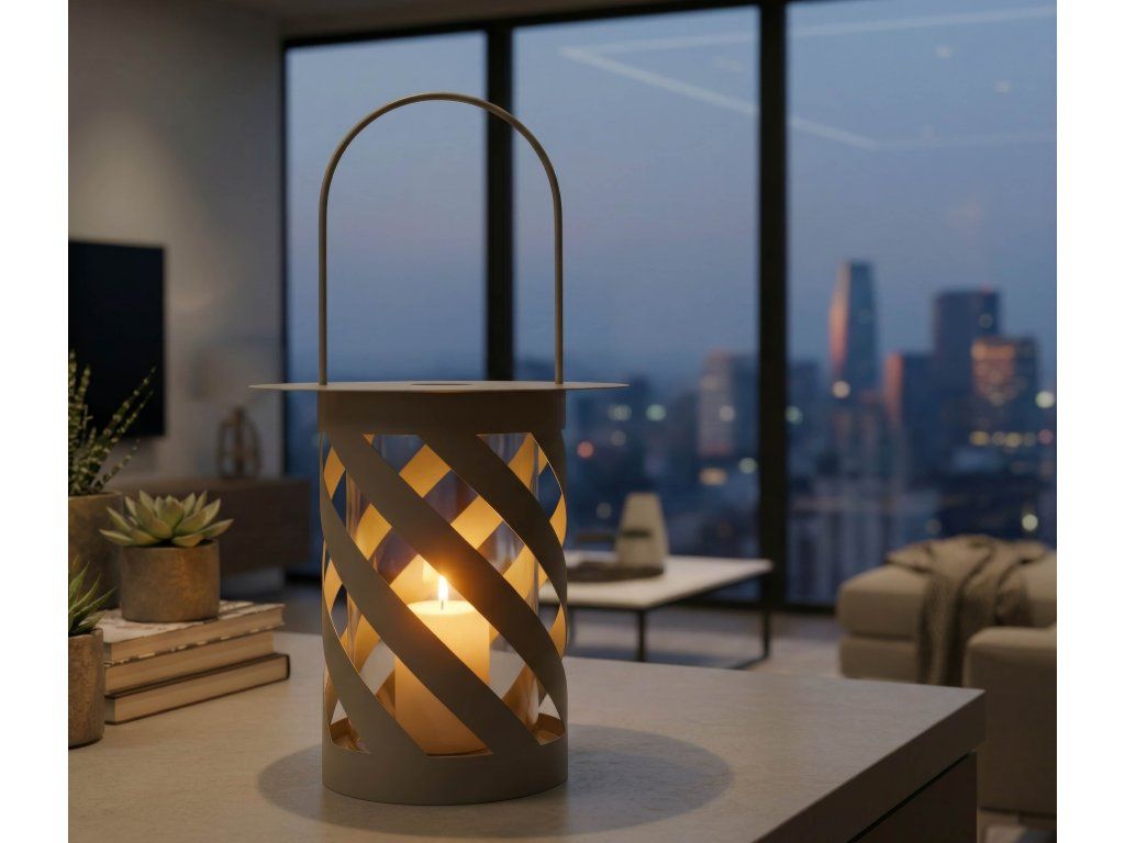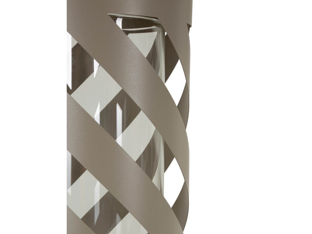 Prepletaný dizajn s diagonálnymi výrezmi umožňuje jemné rozptýlenie svetla a vytvára príjemnú, hrejivú atmosféru počas večerného posedenia. Lampáš je ideálny na sviečku a hodí sa na terasu, balkón aj do moderného či škandinávskeho interiéru.