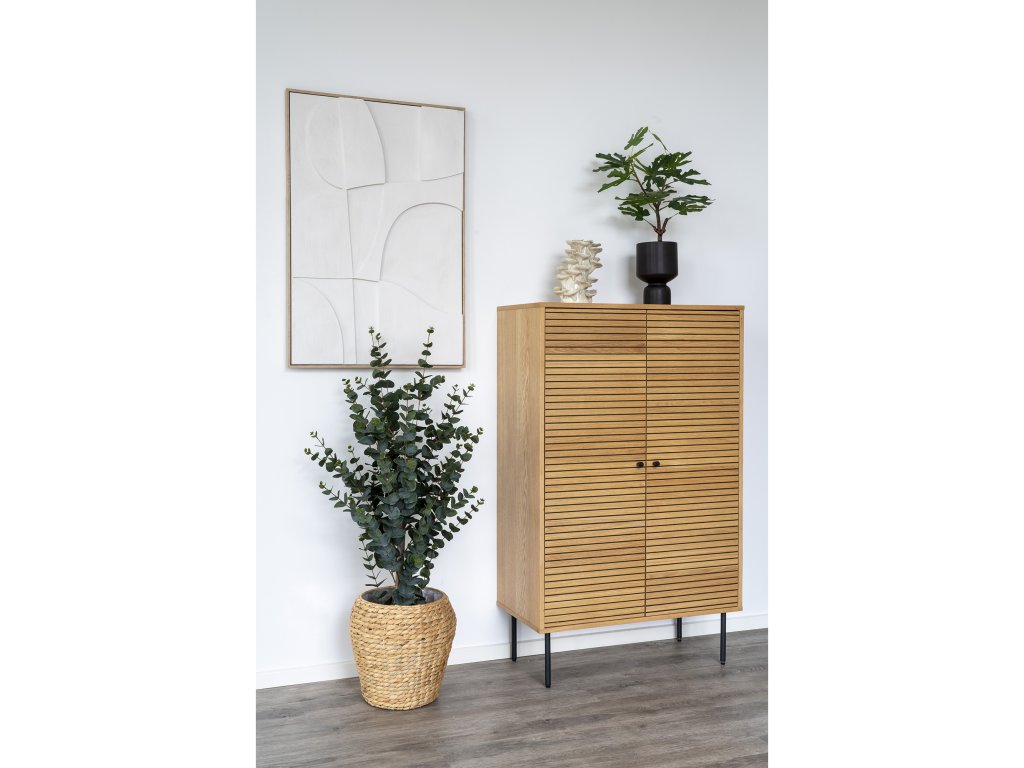 Kyoto je navrhnutá pre tých, ktorí chcú mať v interiéri pocit prirodzenej pohody. Dvoje plné dvierka ukrývajú praktický úložný priestor, zatiaľ čo svetlá dubová dyha pôsobí sviežo a ľahko. Vďaka tomu je vhodný do obývačky, jedálne či pracovne, kde okrem funkčnosti prinesie aj estetickú hodnotu S rozmermi 80 × 40 × 130 cm ponúka dostatok priestoru na odkladanie každodenných vecí, pričom si zachováva kompaktný vzhľad. Výška mu dodáva elegantný charakter, no úzka hĺbka a šírka zabezpečia, že sa hodí aj do menších priestorov. Pri hmotnosti 36 kg je pevný a stabilný, s nosnosťou až 30 kg.