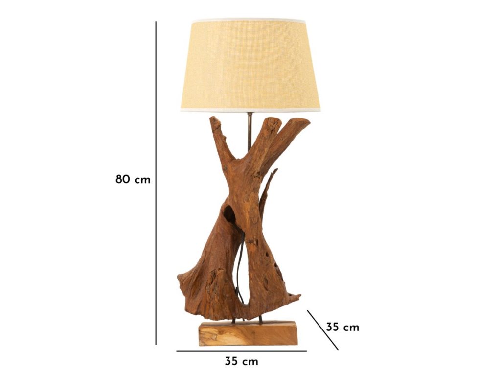 Prírodná stolná lampa z teaku – jedinečný svetelný doplnok z recyklovaného dreva.