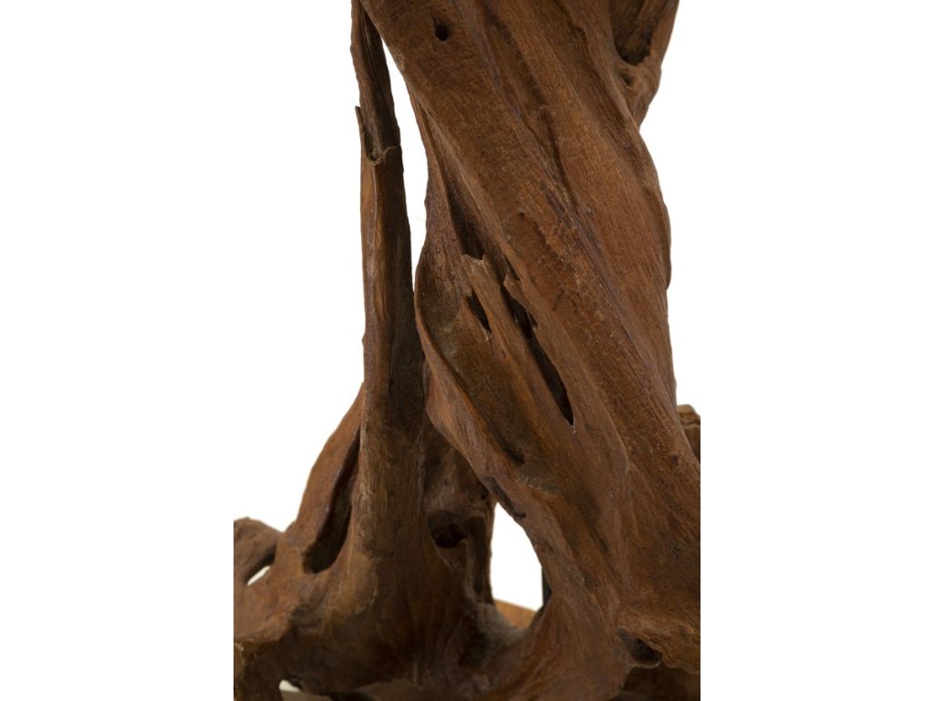 Táto lampa predstavuje harmonické spojenie prírodného materiálu, ručného spracovania a nadčasového dizajnu. Je vyrobená z jedného kusu recyklovaného teakového kmeňa, vďaka čomu vyniká autentickou kresbou dreva, prirodzenými žilami a organickým tvarom. Každý kus je originál, ktorý vzniká ručne a nenachádza sa v sériovej výrobe.