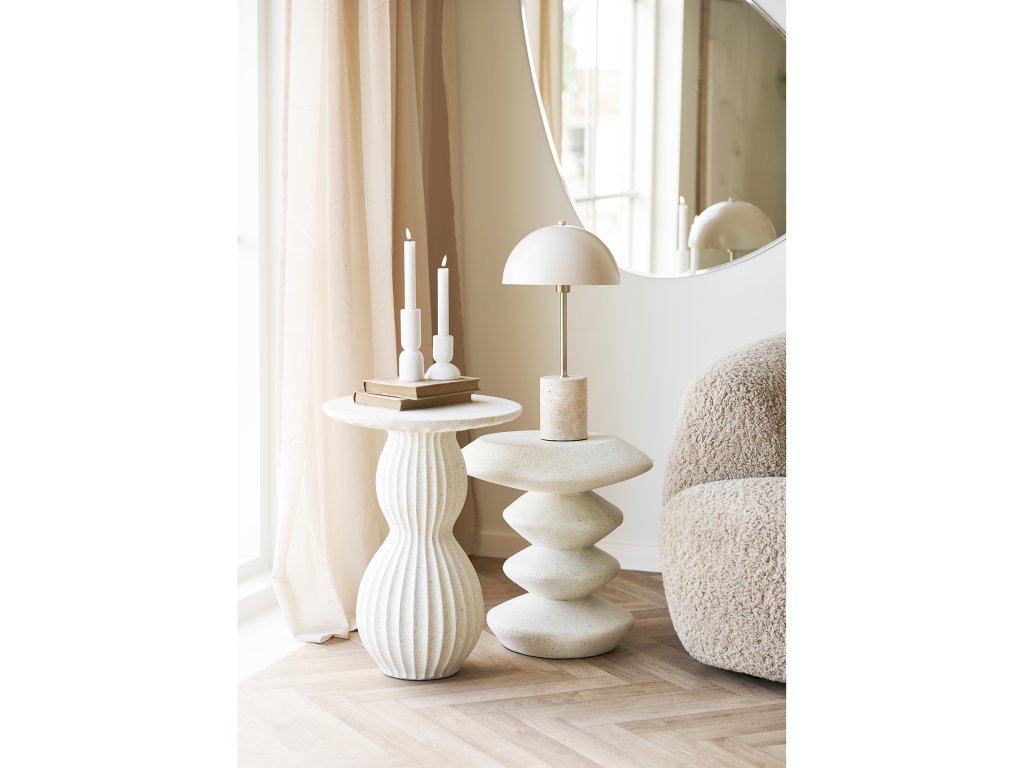 Blackburn Side Table je moderný príručný stolík, ktorý spája čistý dizajn a funkčnosť. Vyrobený z odolného fiberclay materiálu v elegantnej bielej farbe, ponúka jedinečnú kombináciu ľahkosti a pevnosti. Vďaka svojim kompaktným rozmerom Ø36×45,5 cm je ideálnym doplnkom do obývačky, spálne, kancelárie či kaviarne. Jeho hladký povrch a jemne zaoblené línie vytvárajú nadčasový vzhľad, ktorý zapadne do moderného aj minimalistického interiéru.