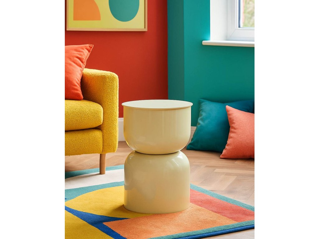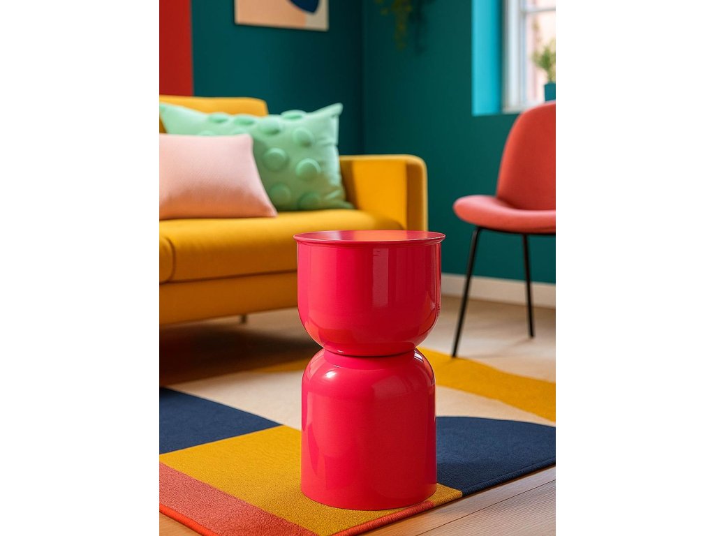 Vyrobený je z kvalitného kovu, ktorý zaručuje stabilitu a odolnosť, pričom jeho kompaktné rozmery umožňujú umiestnenie aj do menších priestorov. Stolík sa jednoducho kombinuje s neutrálnym nábytkom a doplnkami, čím sa jeho výrazná farebná energia stáva hlavným akcentom interiéru.