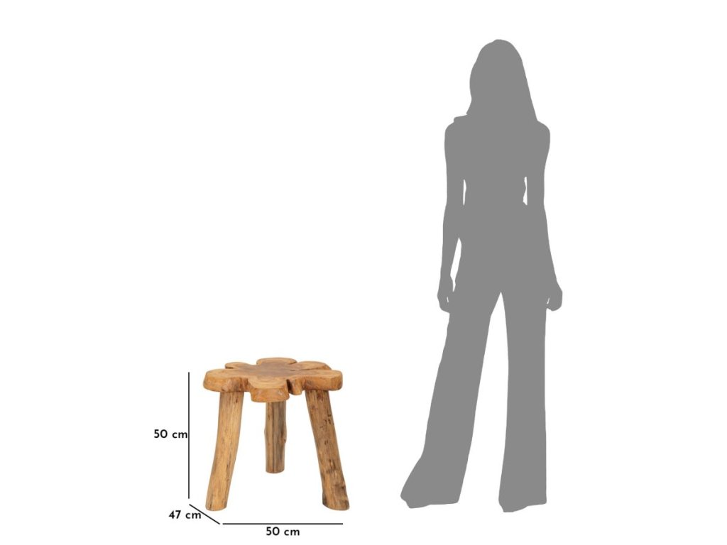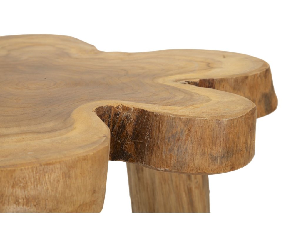 Teak je známy svojou tvrdosťou, odolnosťou a dlhou životnosťou. Vďaka svojej prirodzenej hustote a olejnatosti je odolný voči poškodeniu a má nádhernú, prirodzenú kresbu, ktorá dodáva každému kusu originálny vzhľad. Povrchová úprava stolíka zvýrazňuje štruktúru dreva a podčiarkuje jeho prirodzenú krásu.