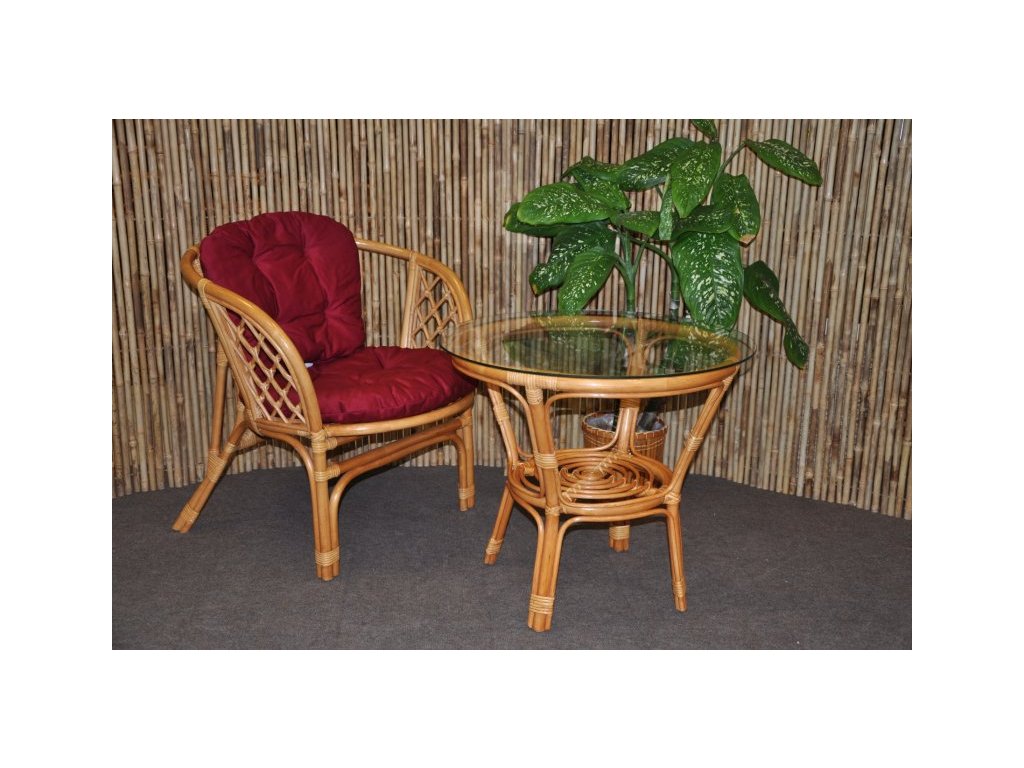 Ratanová sedacia súprava Bahama 1+1 medová je vyrobená z prírodného ratanu v teplom medovom odtieni, ktorý vniesie do vášho interiéru alebo na terasu prírodný a útulný nádych. Súprava pozostáva z jedného pohodlného kresla a praktického stolíka so sklenenou doskou. Súčasťou sú kvalitné polstre dostupné v ďalších farebných variantách, vďaka čomu si ľahko prispôsobíte súpravu svojmu prostrediu.