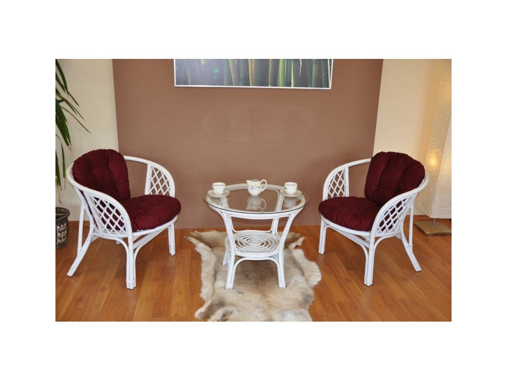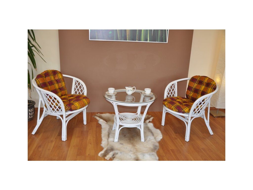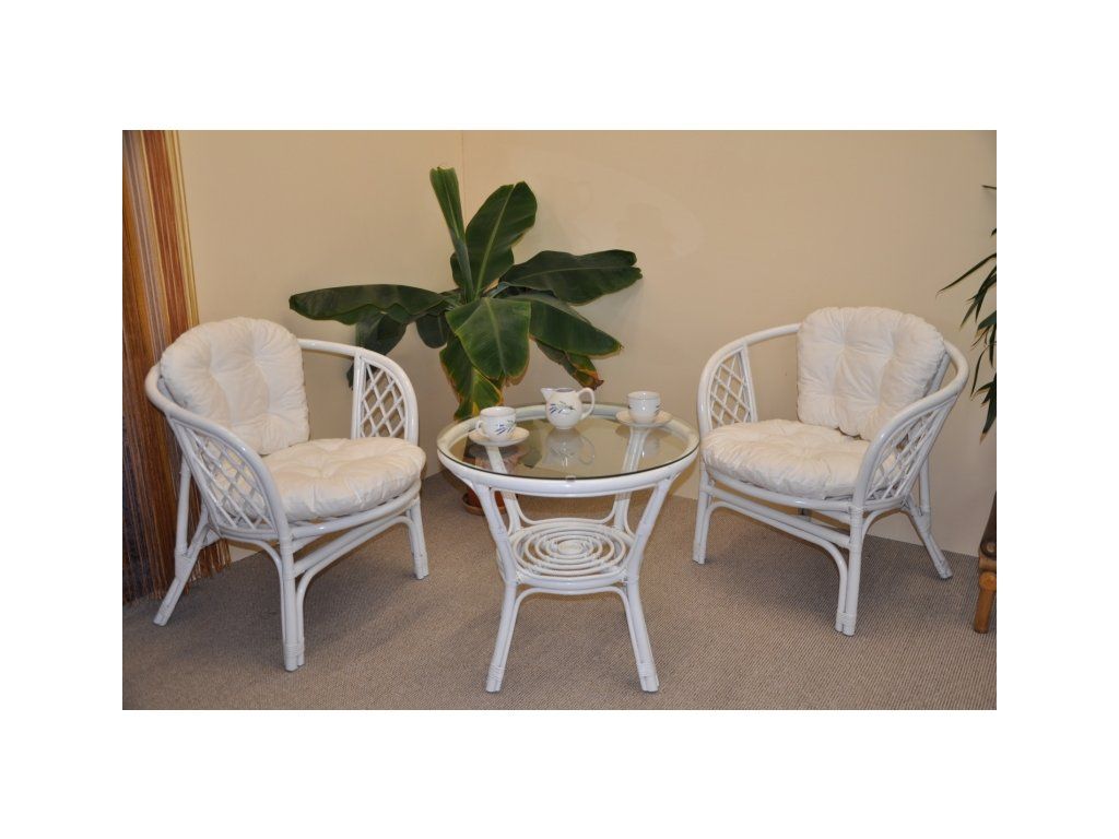 Ratanová sedacia súprava Bahama biela 2+1 – z prírodného ratanu.