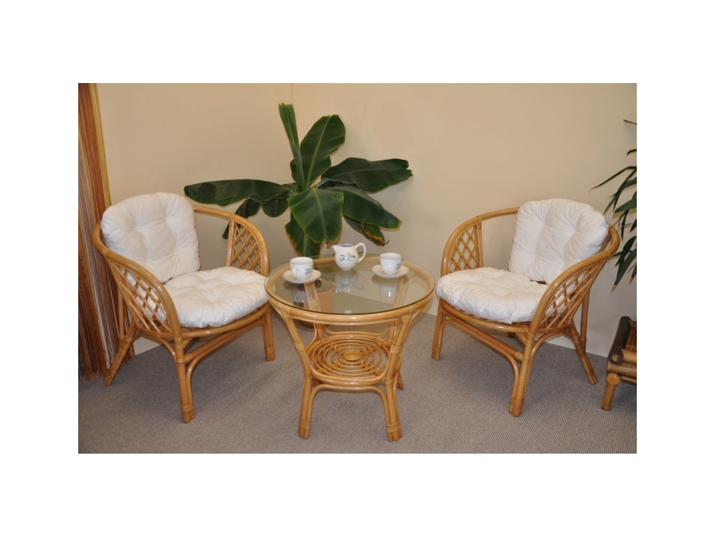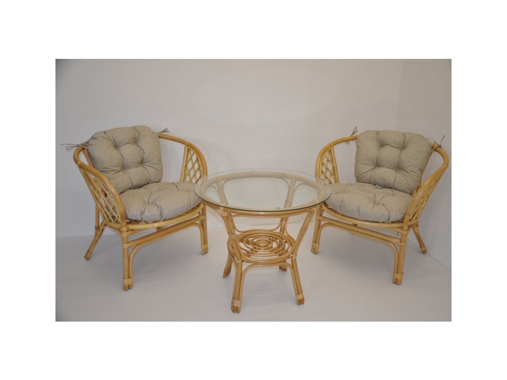 Sedacia súprava Bahama patrí medzi najobľúbenejšie ratanové súpravy. Súprava obsahuje dve kreslá, stolík so sklenenou doskou a kompletnú sadu polstrov, ktoré zabezpečia pohodlné sedenie a štýlový vzhľad.