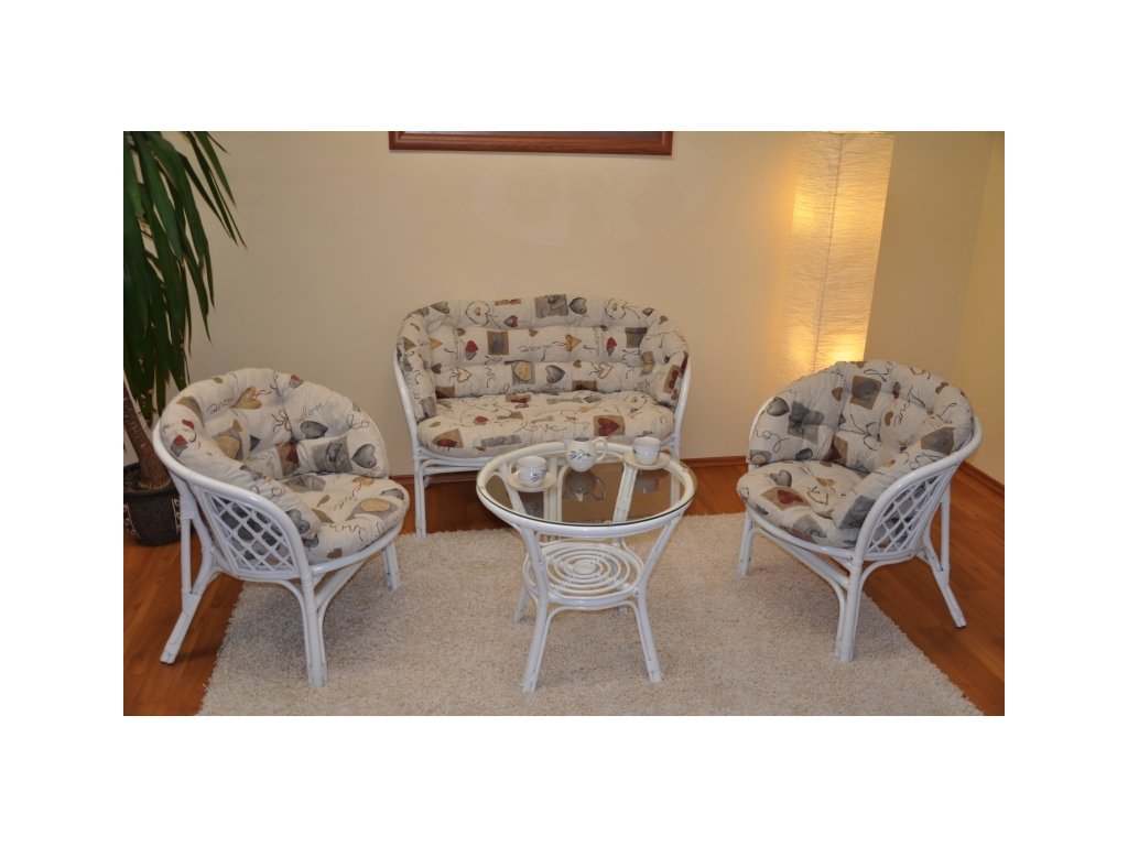 Ratanová sedacia súprava Bahama veľká biela - polstre MAXI