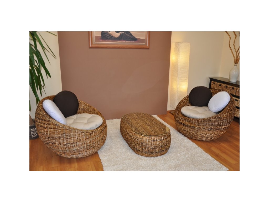 Ratanová súprava Baverly s ručne vypletanými banánovými listami vnesie do interiéru prírodný štýl a nádych exotiky.