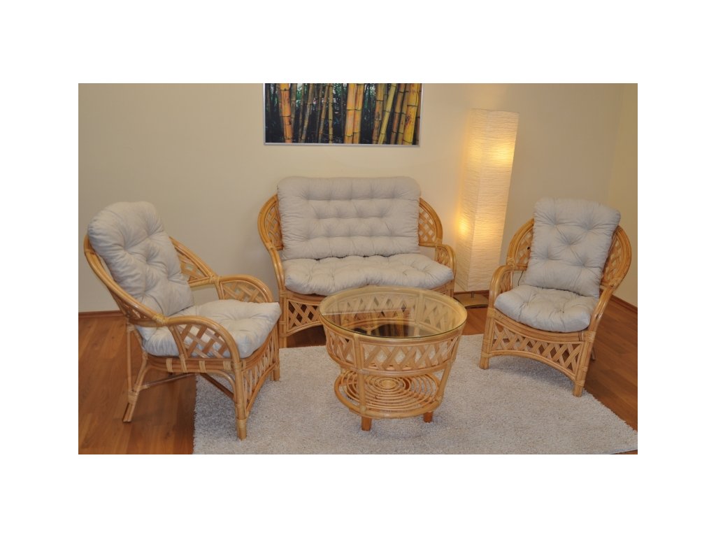 Elegantná ratanová súprava Copacabana s pevnou konštrukciou zo zdvojených ratanových tyčí ponúka komfortné a štýlové sedenie.