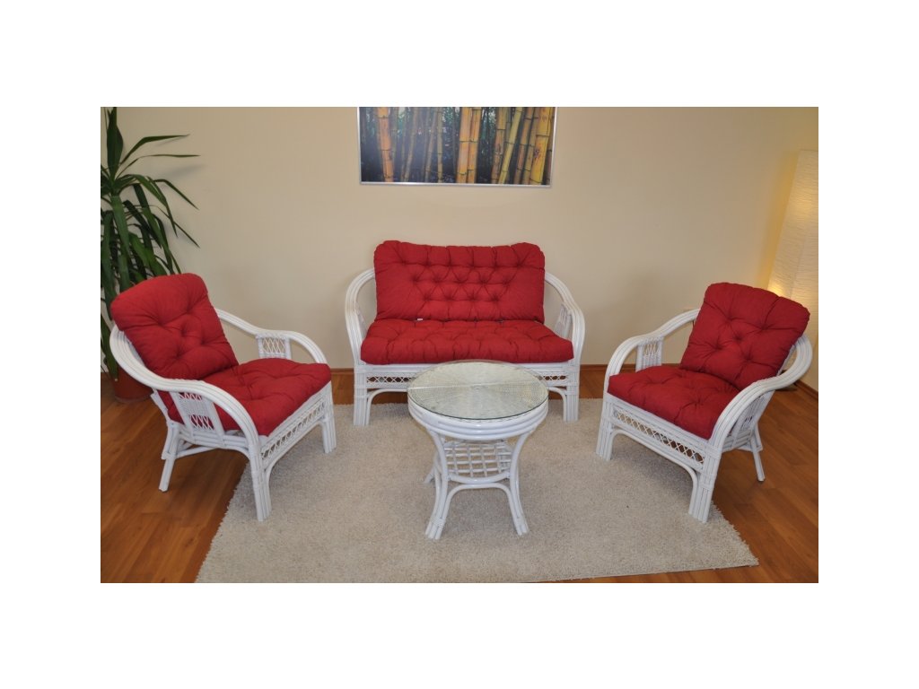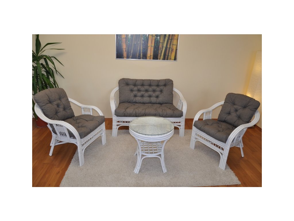 Ratanová sedacia súprava Rio de Janeiro je vyrobená z prírodného masívneho ratanu a pozostáva z pohovky, dvoch kresiel, stolíka so sklenenou doskou a sady polstrov. Konštrukcia je v mnohých miestach trojitá, čo zabezpečuje vysokú pevnosť, a spolu s kvalitnými polstrami poskytuje veľmi pohodlné sedenie. Biely odtieň ratanu dodáva súprave elegantný, svieži a nadčasový vzhľad vhodný do obývacej izby, zimnej záhrady alebo na krytú terasu.