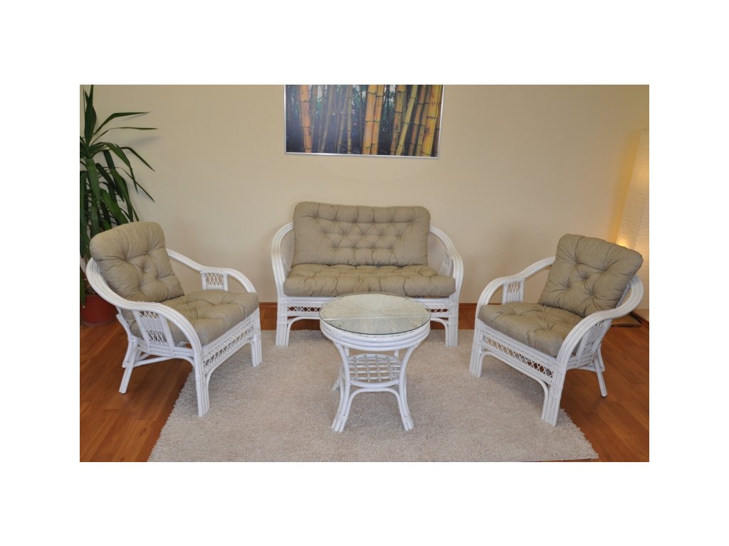 Ratanová sedacia súprava Rio de Janeiro – biela s polstrami.