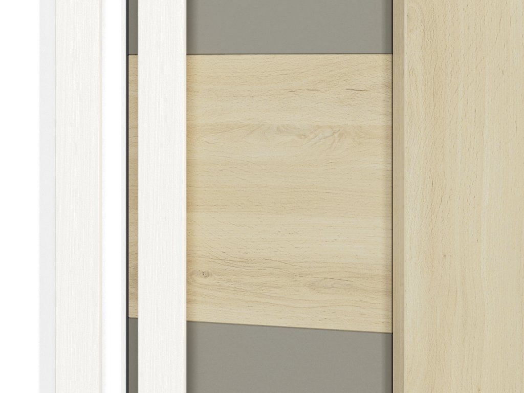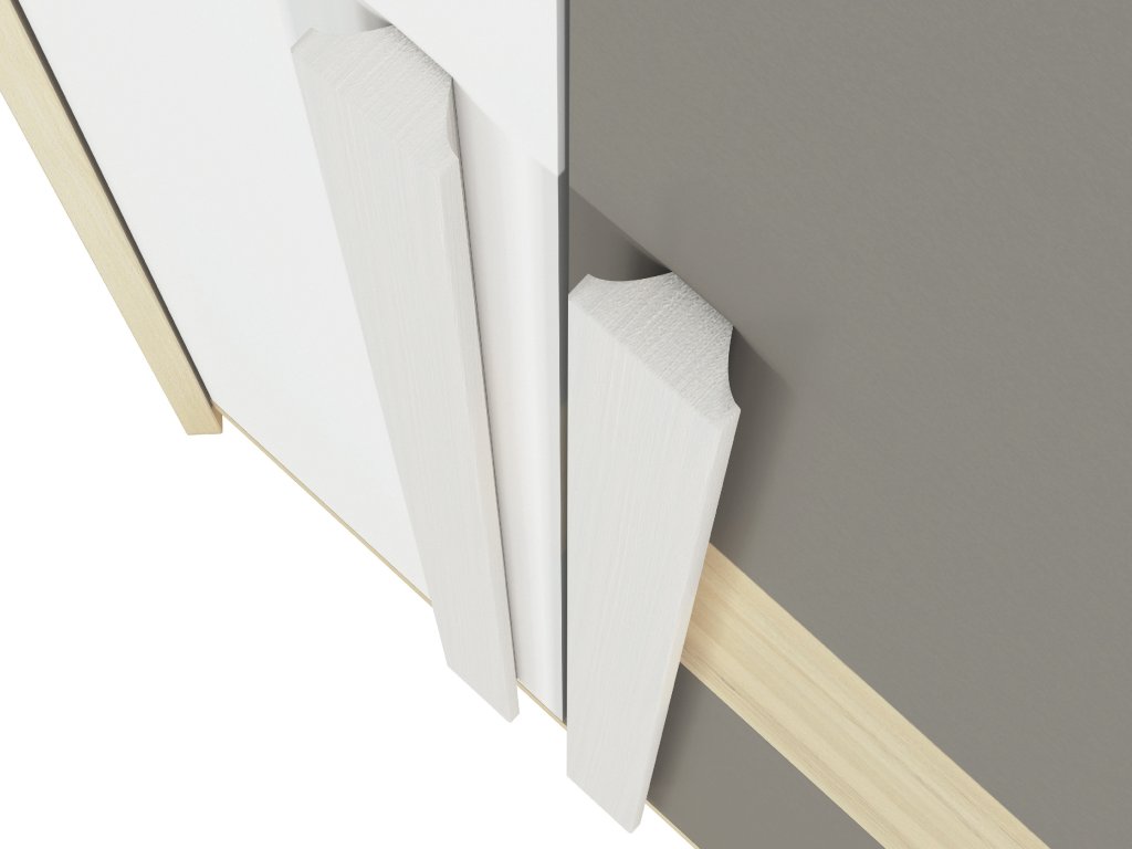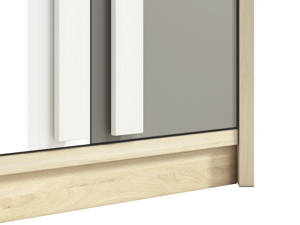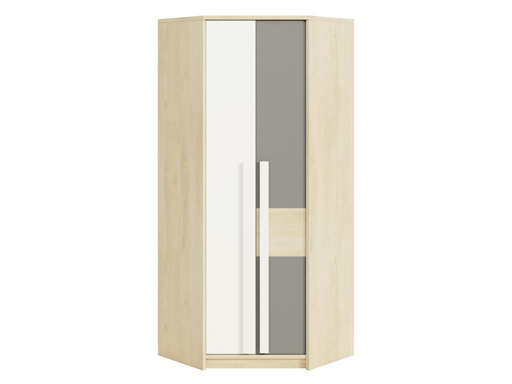 Skriňa Drop je praktická rohová skriňa, ktorá ponúka ideálne riešenie pre efektívne využitie priestoru v detskej alebo študentskej izbe. Kombinácia dekoru buk fjord, bielej a sivej farby pôsobí moderne a sviežo, takže sa hodí do izby pre deti aj tínedžerov.
