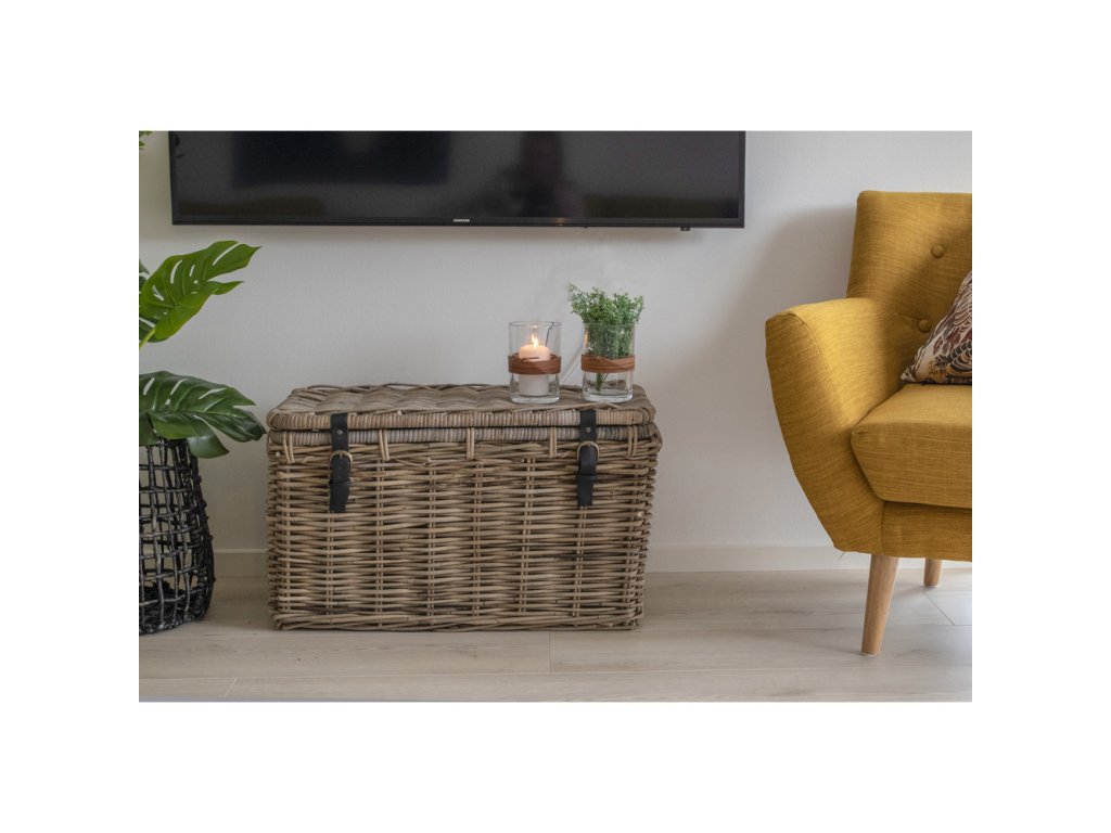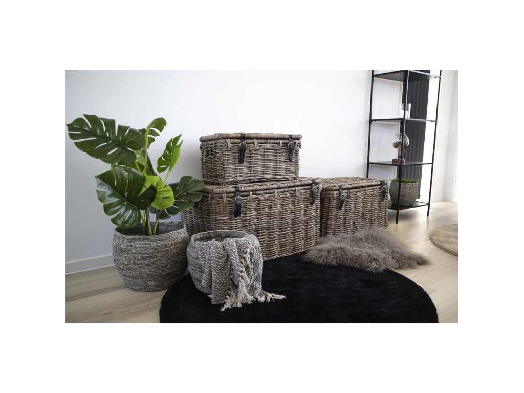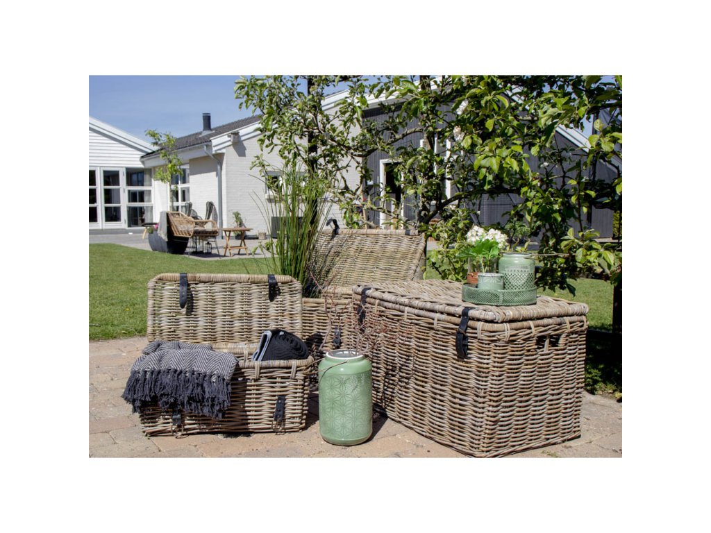 Ratan Kubu je známy svojou pevnosťou, pružnosťou a odolnosťou, vďaka čomu sú truhlice stabilné a dlhotrvajúce. Ich povrch s jemným sivým odtieňom vytvára elegantný kontrast a zároveň pôsobí teplo a príjemne. Každý kus kolekcie Depok je originál – s prirodzenou štruktúrou ratanu a autentickým remeselným spracovaním.