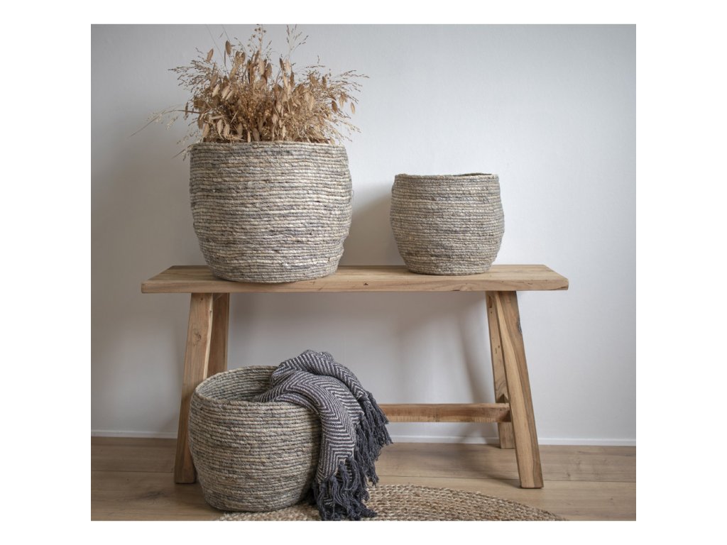 Každý kôš je ručne tkaný, čo zaručuje jedinečný charakter a autentický vzhľad. Materiál z kukuričných listov je ľahký, no pevný a odolný, takže zvládne každodenné používanie bez straty tvaru. Sivé tónovanie dodáva kolekcii Tivoli elegantný a univerzálny vzhľad, ktorý sa perfektne hodí do moderného, škandinávskeho aj rustikálne ladeného interiéru.