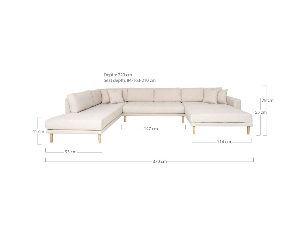 Sedacia súprava Lido do tvaru U s otvoreným koncom v pieskovom prevedení poskytuje komfort, štýlový vzhľad a praktickosť. Ideálna do veľkých obývacích izieb, lounge priestorov alebo kancelárií, kde zaujme svojou farbou a elegantným štýlom.