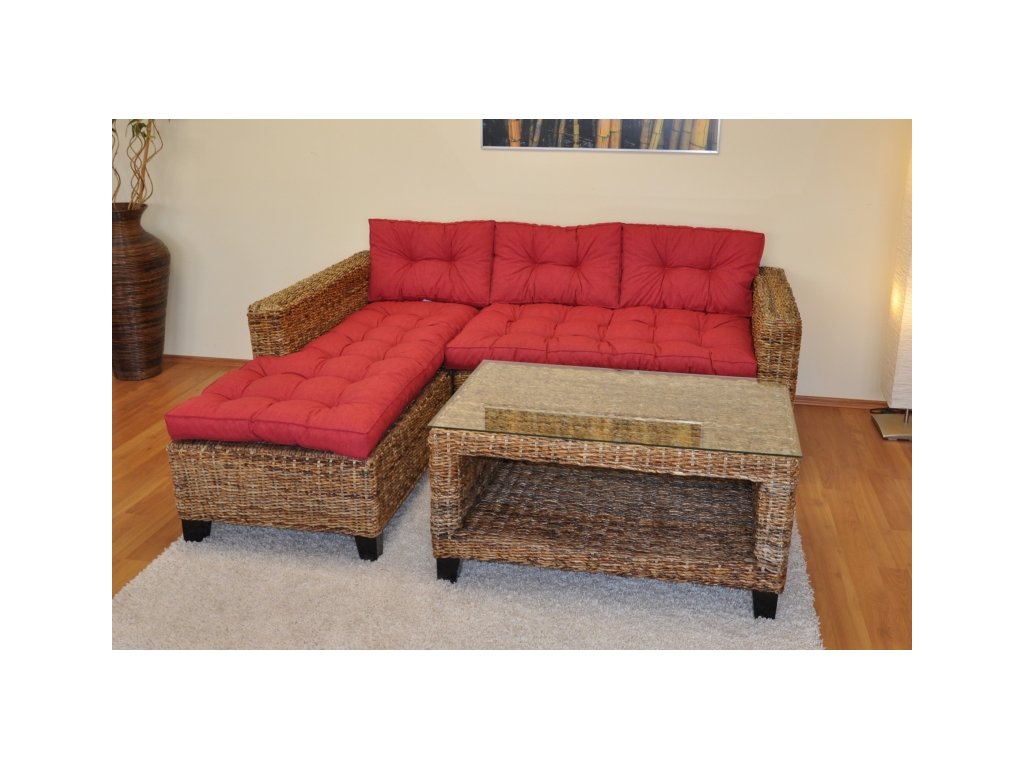 Elegantná ratanová súprava Penang s masívnou mahagónovou konštrukciou a ručne vypletaným banánovým listom prináša do vášho interiéru kombináciu prírodného štýlu a pohodlia.