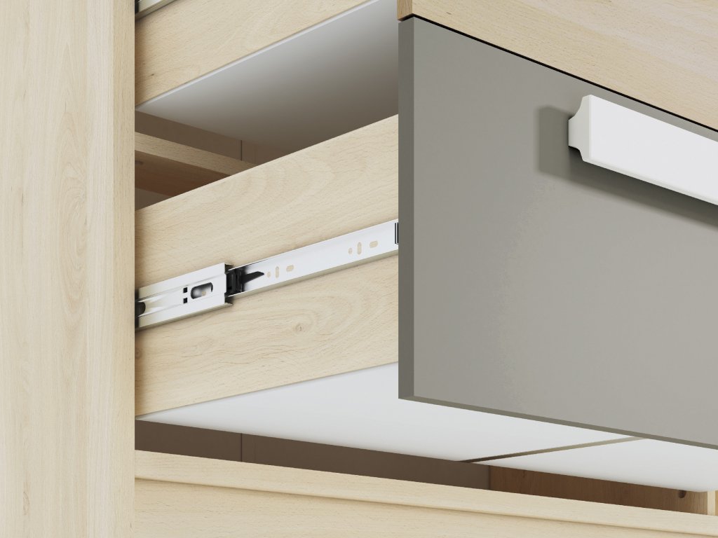 Vďaka väčšej šírke poskytuje komoda dostatok úložného priestoru na oblečenie, školské potreby, dokumenty aj rôzne doplnky. Vnútorné usporiadanie umožňuje prehľadné uloženie všetkých vecí a jednoduchý prístup, čo oceníte pri každodennom používaní.
