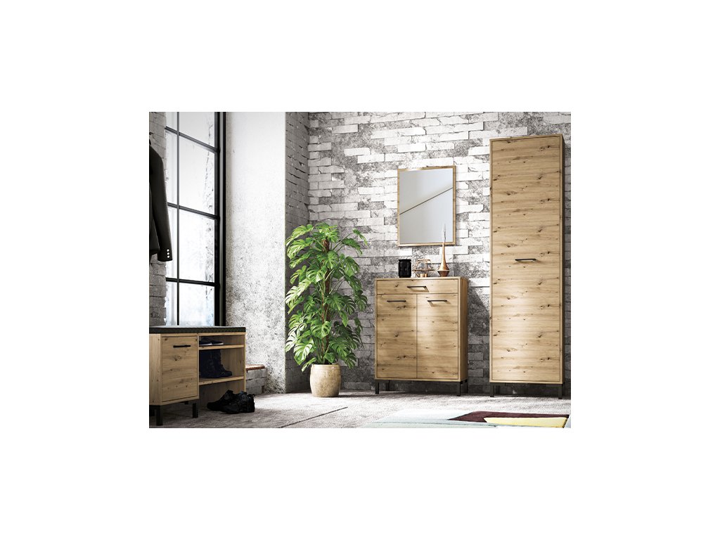 Vďaka kompaktným rozmerom poskytuje dostatok miesta na uskladnenie obuvi a doplnkov, pričom sa dá jednoducho kombinovať s ďalším nábytkom z kolekcie Nevio. Je ideálna do predsiení, chodieb aj menších priestorov, kde zabezpečí praktickú a prehľadnú organizáciu.