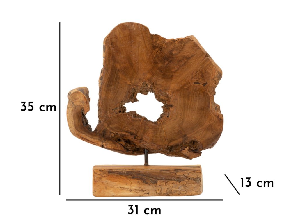 Predstavuje spojenie prírodného materiálu a umeleckého ručného spracovania. Každý kus je originálom, ktorý nevzniká sériovo, čím sa stáva výnimočným dekoratívnym prvkom s vlastným príbehom. Tvar sochy zachytáva prirodzené línie, suky a krivky dreva, ktoré odhaľujú krásu nedokonalosti a autentickú energiu prírody.