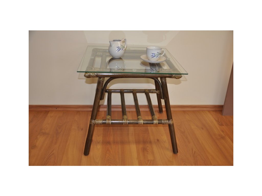 Odkladací stolík Elmira – ratan so sklenenou doskou.
